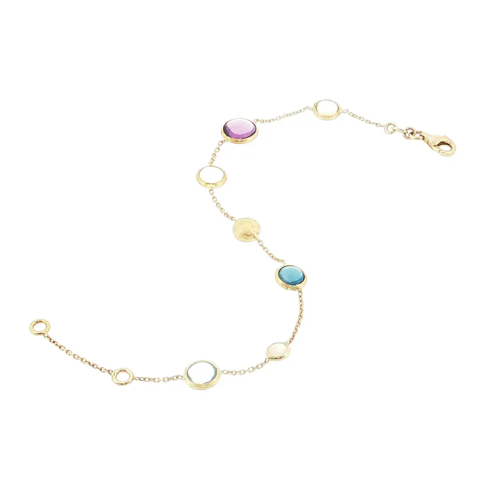 优雅的14K黄金手链是喜爱精致饰品女性的理想选择。细致链条搭配6颗彩色宝石,呈现和谐经典的设计,适合日常佩戴及特殊场合。