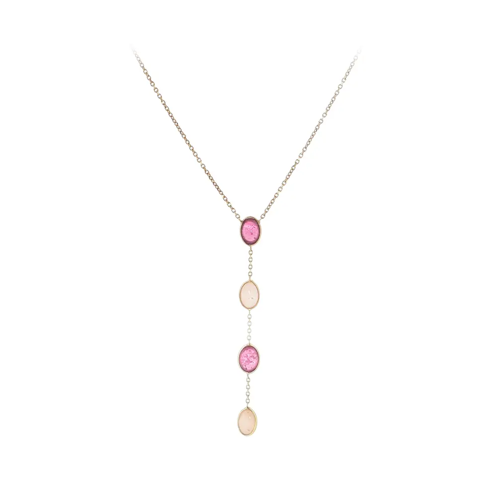 极简设计结合彩色细节,使这款饰品成为经典百搭之选。这款黄金粉色宝石项链是理想的礼物选择。