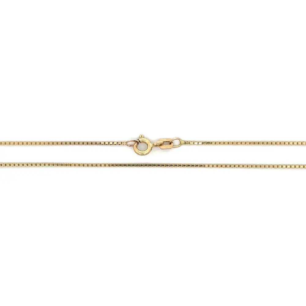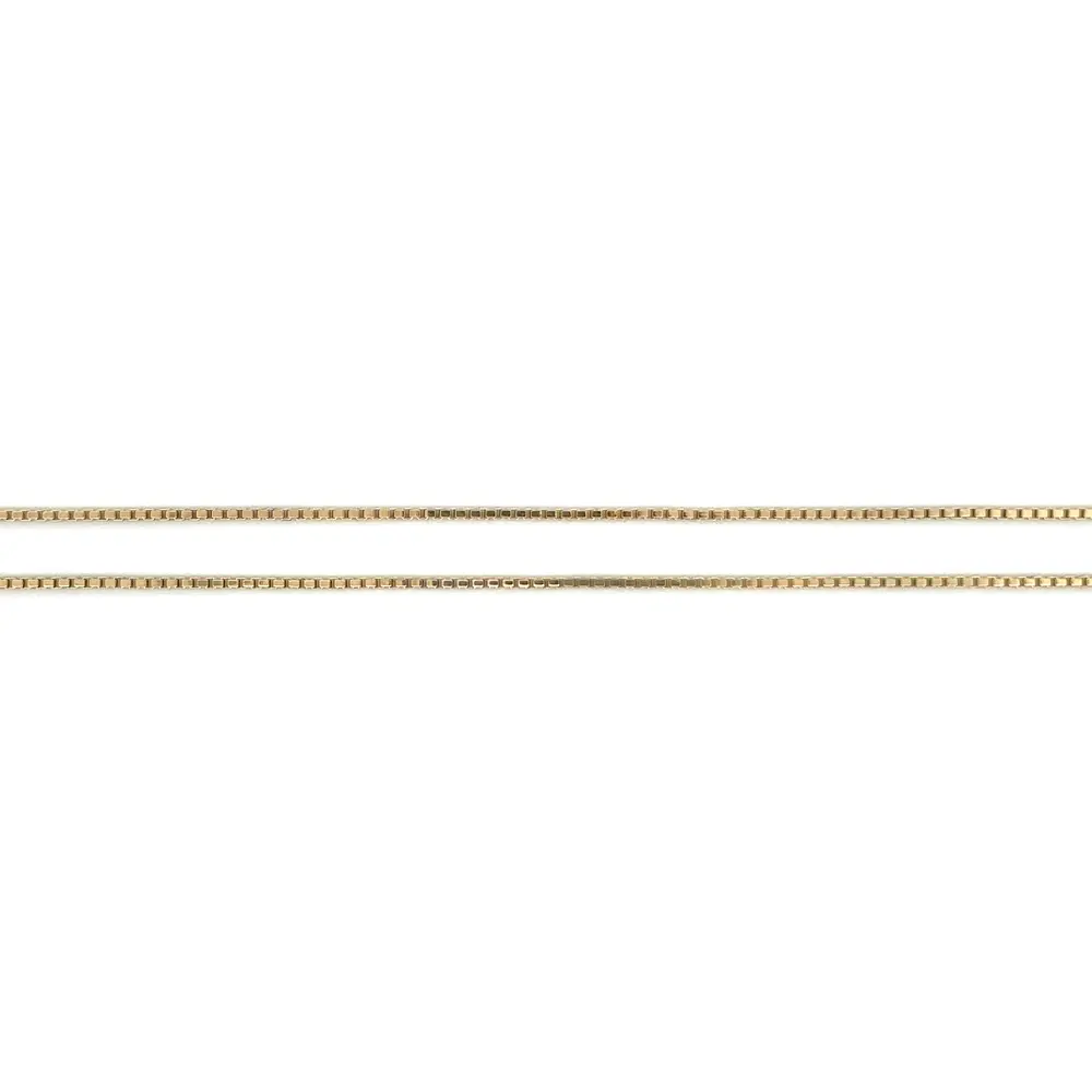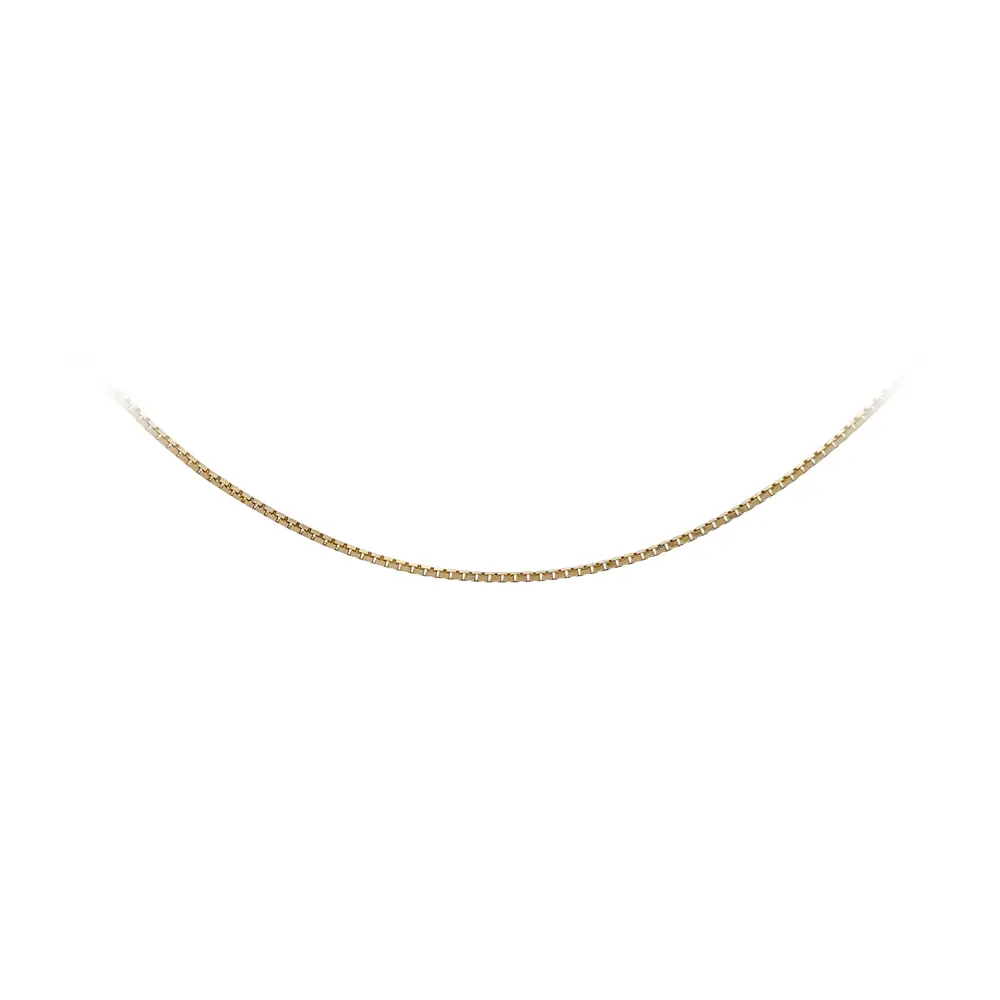这款精致的 方盒链 (Box Chain) 采用 14K 黄金 (585/1000) 精制而成,几何造型简约而优雅,经典耐看。长 50 厘米,宽 0.90 毫米,既适合单独佩戴,也可搭配吊坠彰显高雅气质。