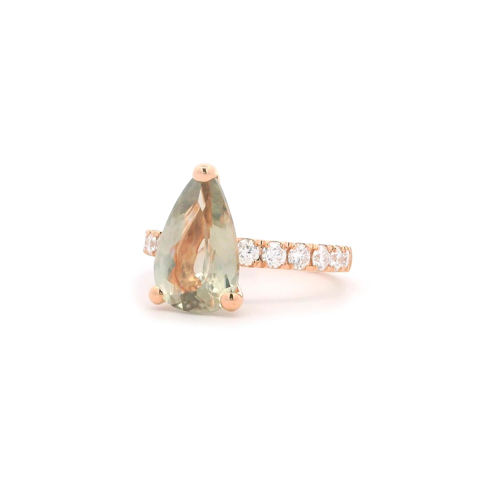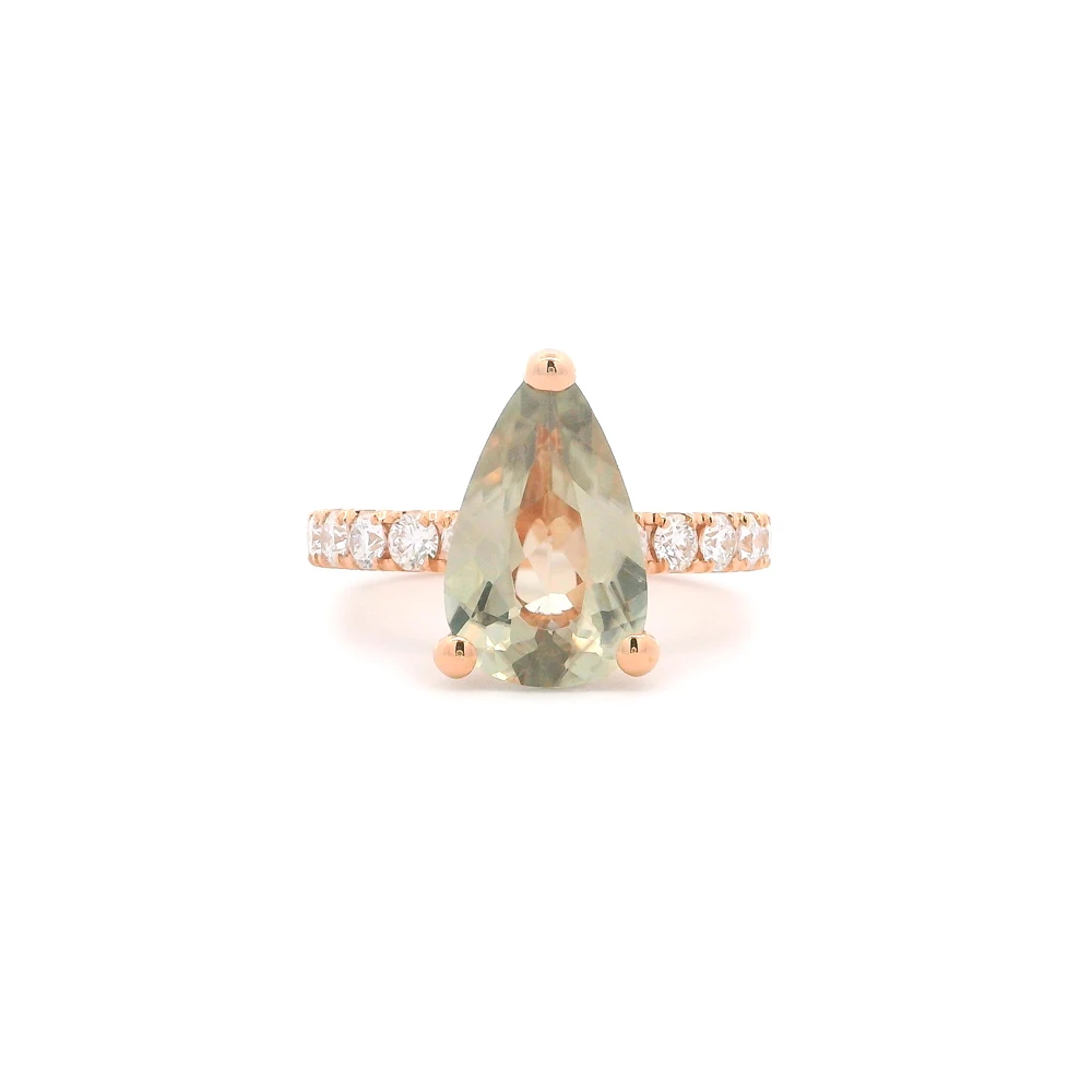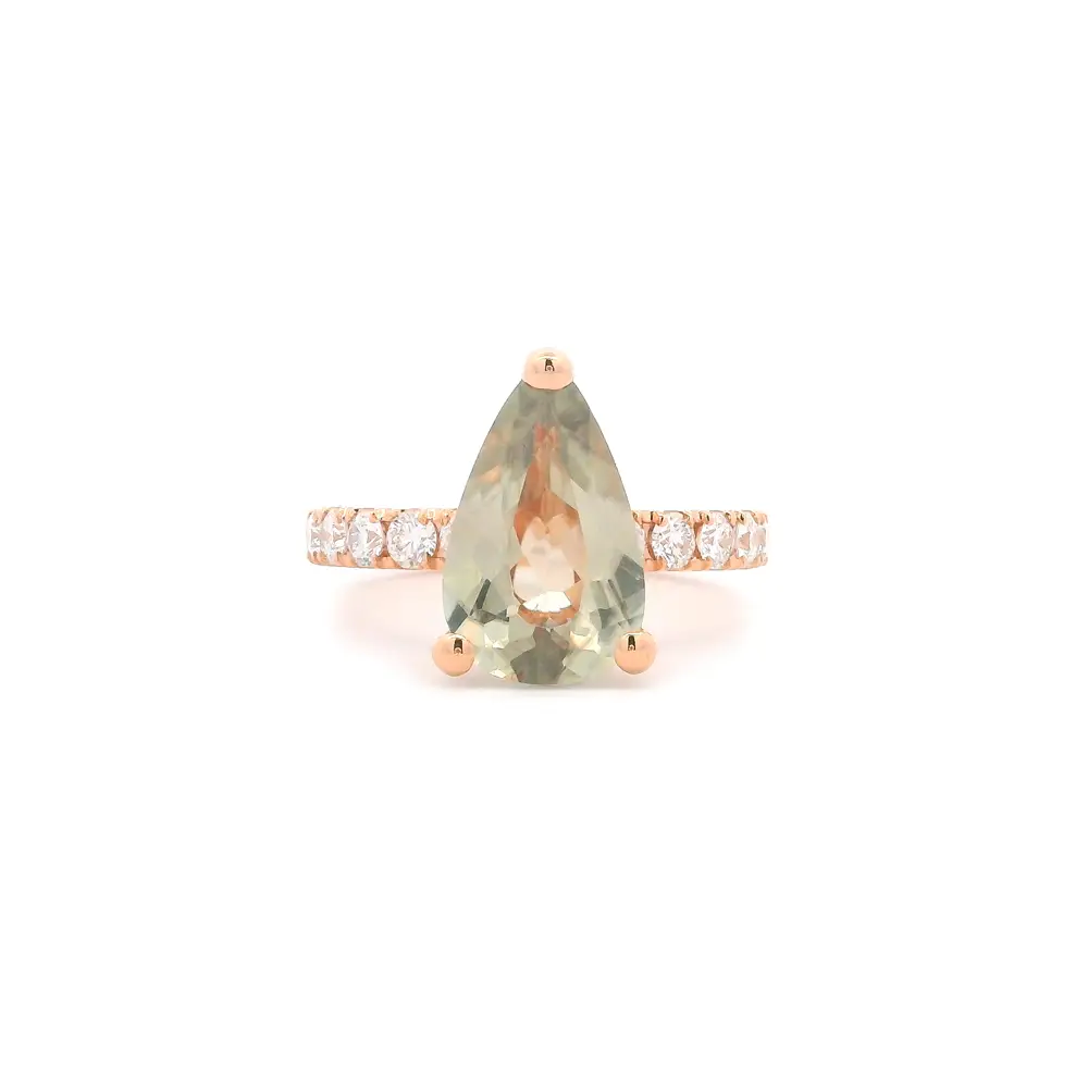 这款优雅的戒指由 18K 玫瑰金 制作,镶嵌一颗醒目的 水滴形碧玺。宝石柔和的色调尽显精致与高雅,在三爪镶嵌的中央位置熠熠生辉。