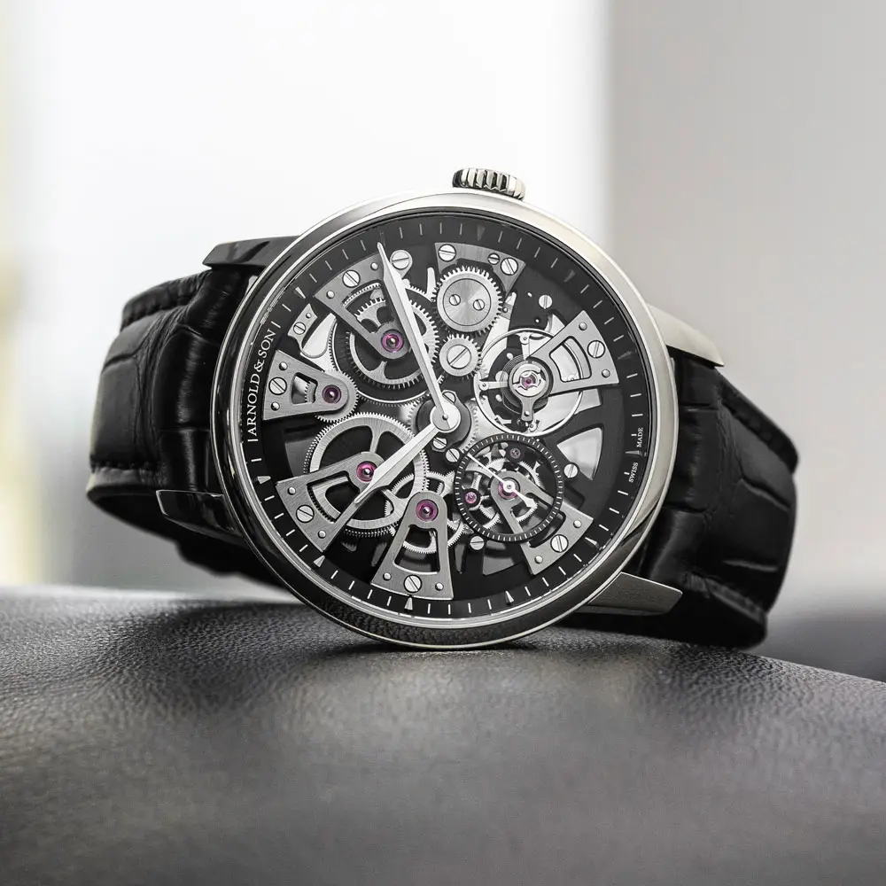 Arnold & Son(亚诺表)以独家制造的复杂机芯而闻名。在该品牌的产品组合中,你会发现带有月相指示、双时区、陀飞轮或镂空的迷人表款。每款腕表不仅是技术上的瑰宝,也是高级制表工艺的美学体现。