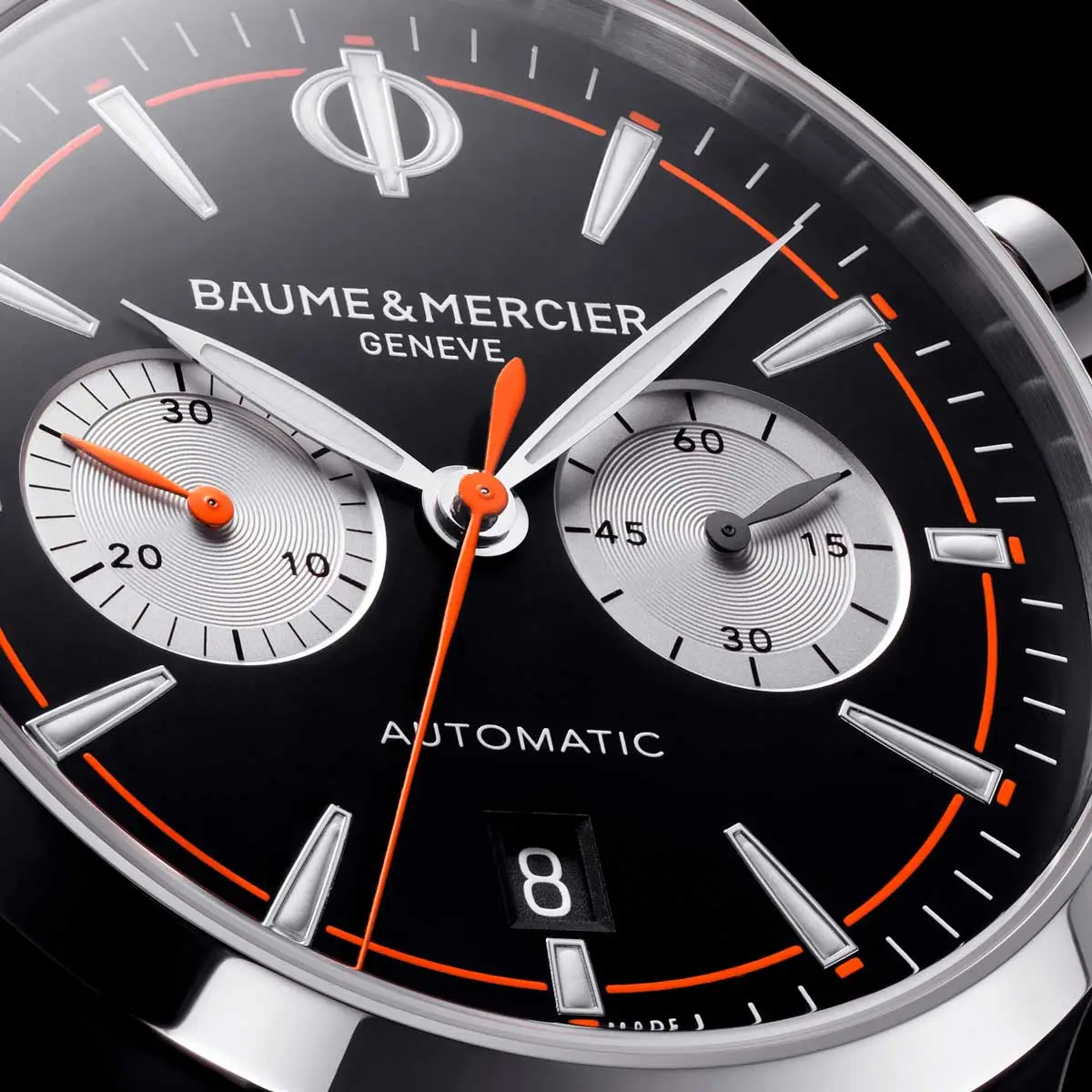 Baume & Mercier Capeland M0A10451 是一款运动风格的男士腕表,将充满活力的设计与瑞士的精湛工艺完美结合。这款腕表采用直径42毫米的黑色不锈钢表壳,彰显现代时尚风格。表盘和表带上的橙色细节为腕表注入了清新活力,突出了其鲜明的运动特性 详细的产品描述