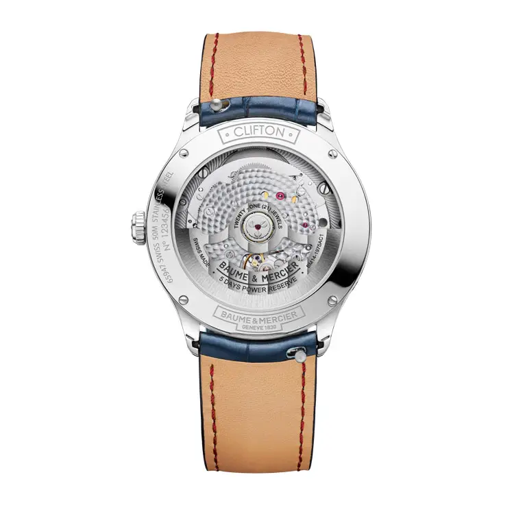 内部搭载可靠的 Baumatic BM14-1975AC1 自动机械机芯,具备卓越的 最长 120 小时动力储存 – 无需频繁上链,佩戴更便捷。