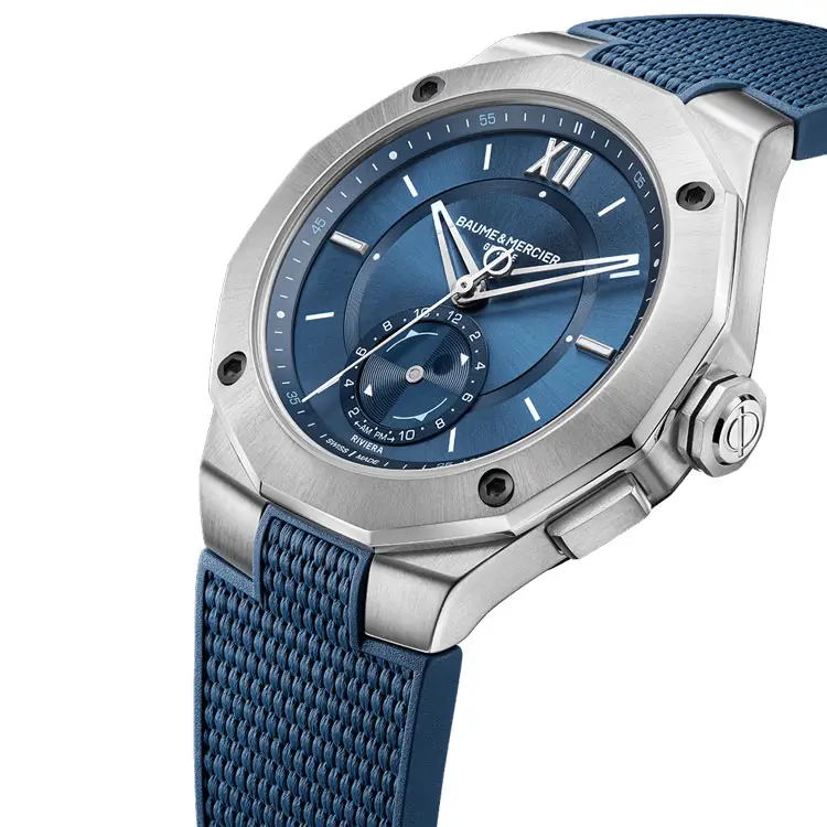 Riviera 表款将不锈钢、钛金属和蓝宝石水晶等奢华材质与包括高性能 Baumatic 机芯在内的精密瑞士机芯完美结合。该系列包括经典的三针表款、计时码表和镂空表款--快速更换表带系统可让腕表轻松适应您的风格。Riviera 代表着优雅、自由和品质。