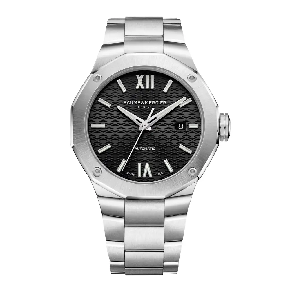 Baume & Mercier Riviera M0A10621 展现了这款标志性系列所代表的现代运动优雅。42 毫米抛光精钢表壳 搭配标志性的 十二边形表圈与四颗螺钉设计,展现出 Riviera 独有的个性。黑色放射纹表盘 在光线下熠熠生辉,而 精钢表链 更添永恒格调。