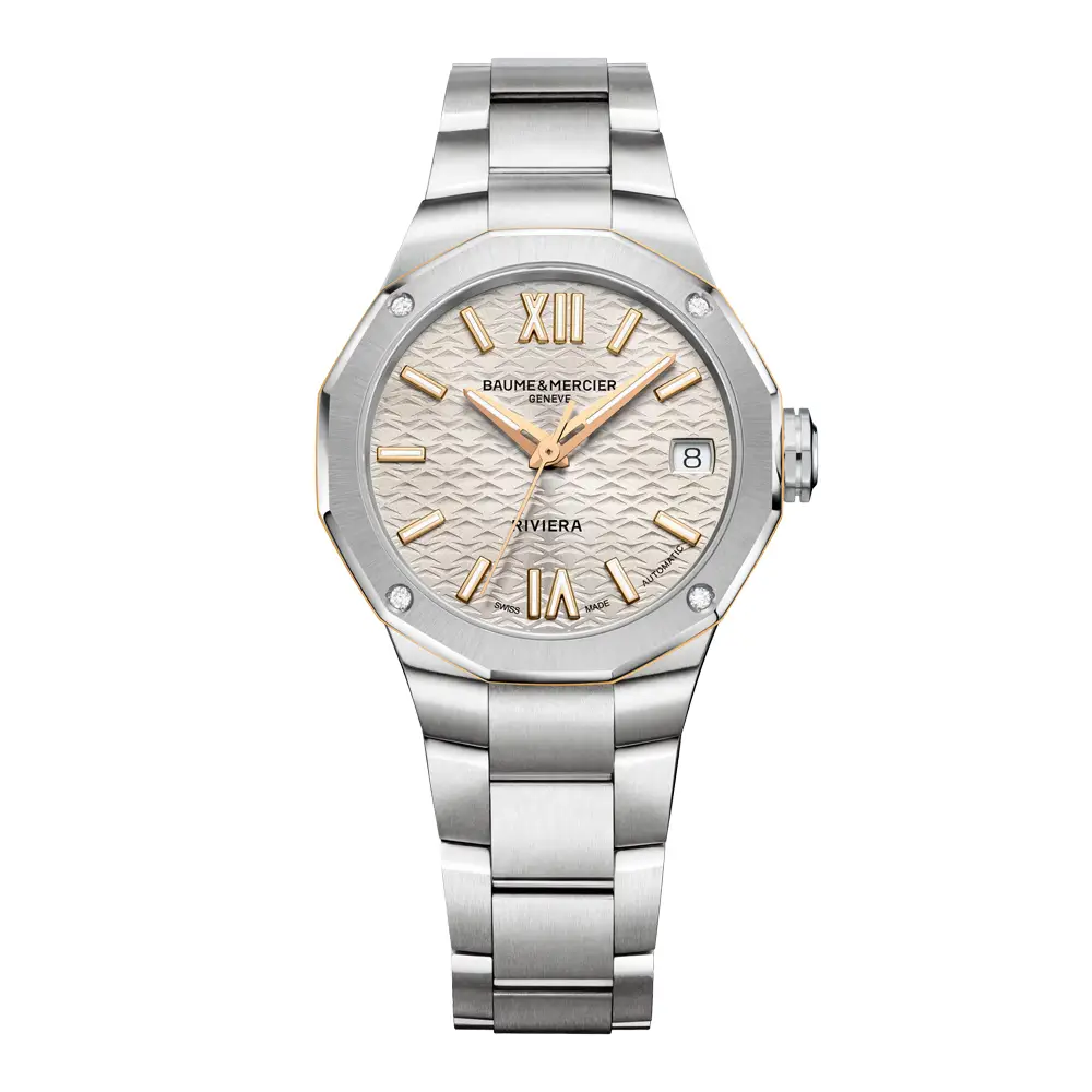 Baume & Mercier Riviera M0A10730 腕表体现了优雅、精湛工艺与女性精致之美。这款Riviera系列的标志性型号,无论在日常佩戴还是特殊场合都能散发光彩。