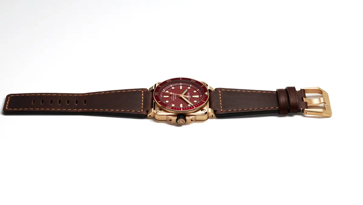 Bell & Ross BR 03-92 Diver Red Bronze 是一款充满魅力的潜水腕表,将品牌标志性的方形设计与海洋传统及坚固可靠的性能相结合。其 42 毫米表壳 采用 CuSn8 红铜制成,这种合金常用于船舶装备,并会随着时间自然形成铜绿,使每一枚腕表都成为独一无二的作品,映照佩戴者的个人故事。