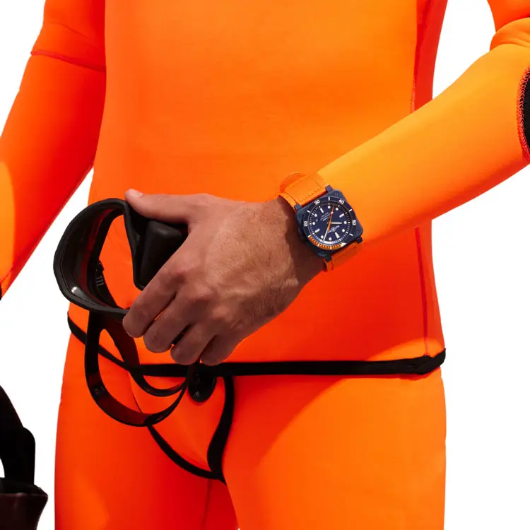 腕表搭载 自动上链机械机芯,确保精准与可靠。蓝色橡胶表带 抗海水腐蚀,搭配 300 米(30 ATM)防水性能。BR 03-92 Diver Tara 是一枚 向海洋致敬、象征探索精神的腕表。