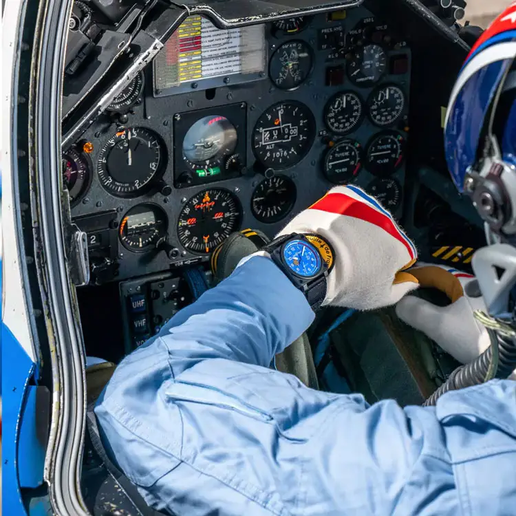 Bell & Ross BR 03‑92 Patrouille de France 70 周年纪念款 是对法国空军著名特技飞行表演队的致敬之作。其限量版设计灵感来自法国国旗的三色元素与航空精神,深受收藏家与飞行爱好者喜爱。