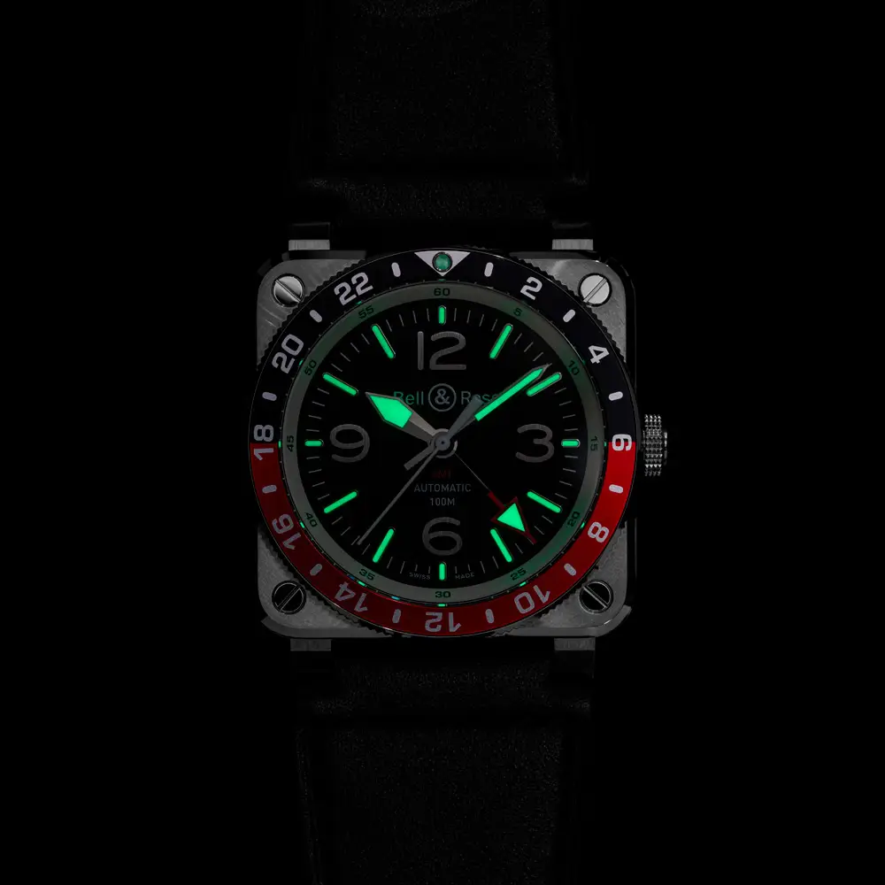 Bell & Ross BR 03-93 GMT 是为全球旅行者量身打造的功能型腕表,能够轻松读取双时区时间。其设计灵感来源于航空,兼具实用性与美观性。