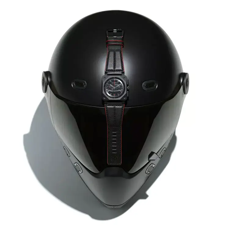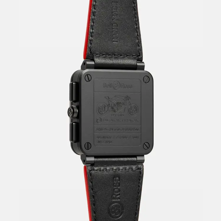 Bell & Ross BR 03-94 Blacktrack BR0394-BTR-CE/SCA代表着奢华、创新和前卫设计的融合。这款独一无二的计时码表是与著名设计师 Szymon Klima 合作设计的,灵感来自高性能摩托车的未来主义线条。
