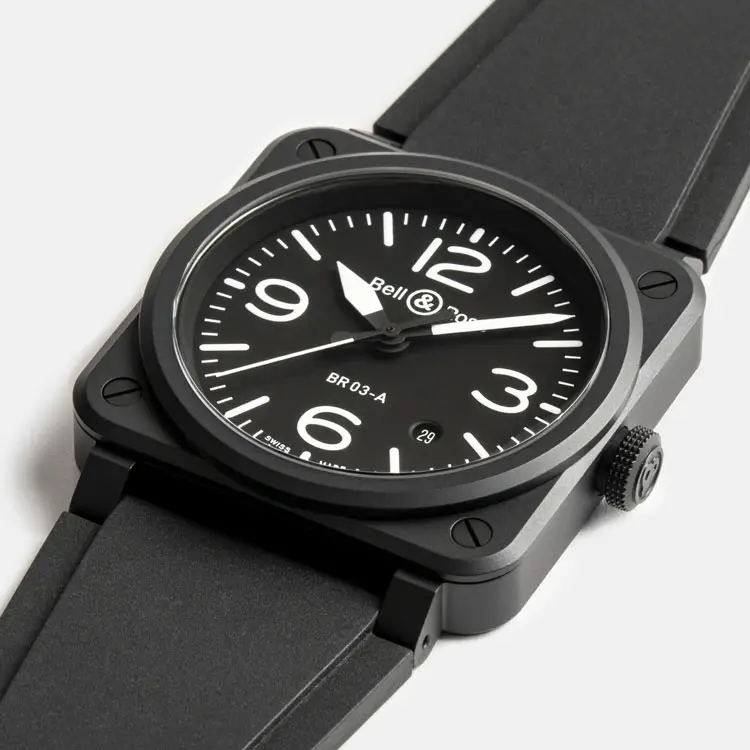 Bell & Ross BR 03 Black Matte 将极简设计、卓越工艺与航空灵感融为一体。这款标志性的 41 毫米方形表壳采用哑光黑色陶瓷打造,兼具轻盈、坚固与现代感。外观简洁却极具力量感。