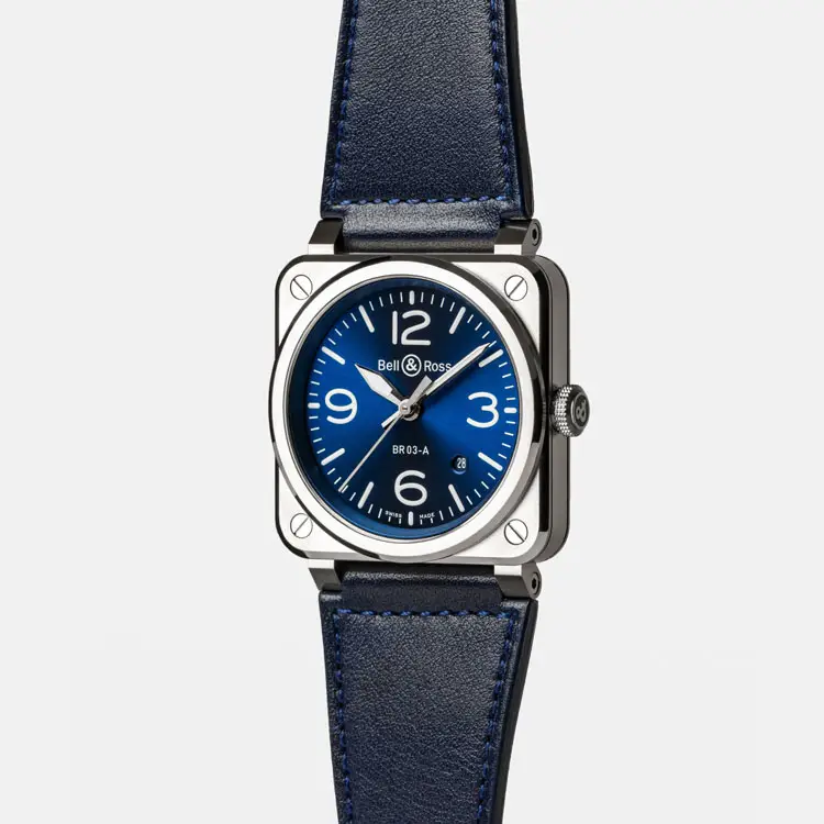 柏莱士 Bell & Ross BR 03 Blue Steel 融合了 航空灵感、精密工艺与现代优雅。其 标志性方形表壳 搭配 深蓝色表盘,展现出 大胆而百搭的风格,适合日常佩戴。