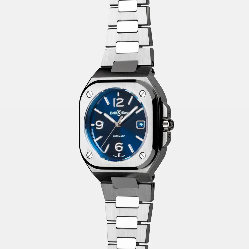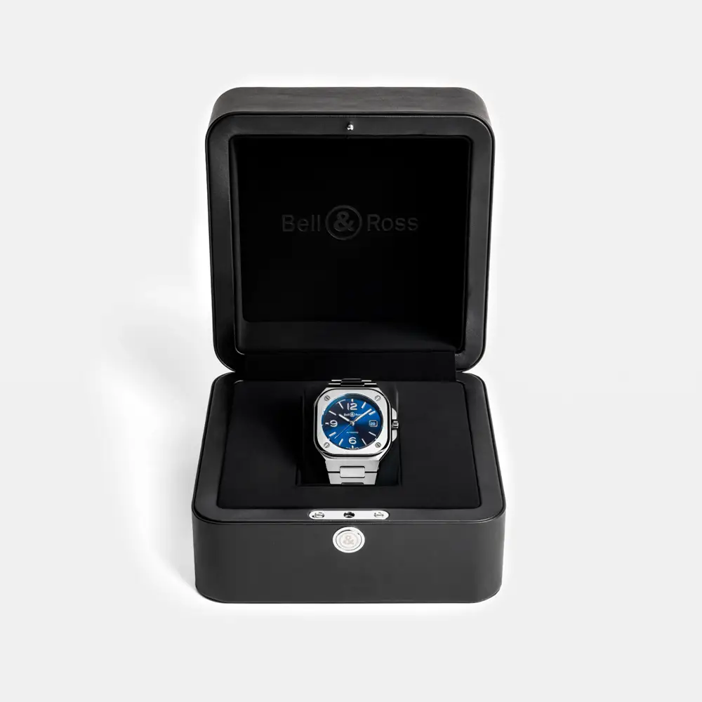 Bell & Ross BR 05 Blue Steel(型号 BR05A-BLU-ST/SST) 展现了 都市优雅与技术精密的完美融合,是 BR 05 系列的典范之作。其 蓝色太阳纹表盘 为腕表增添了清新而高雅的气质,适合日常佩戴及正式场合。