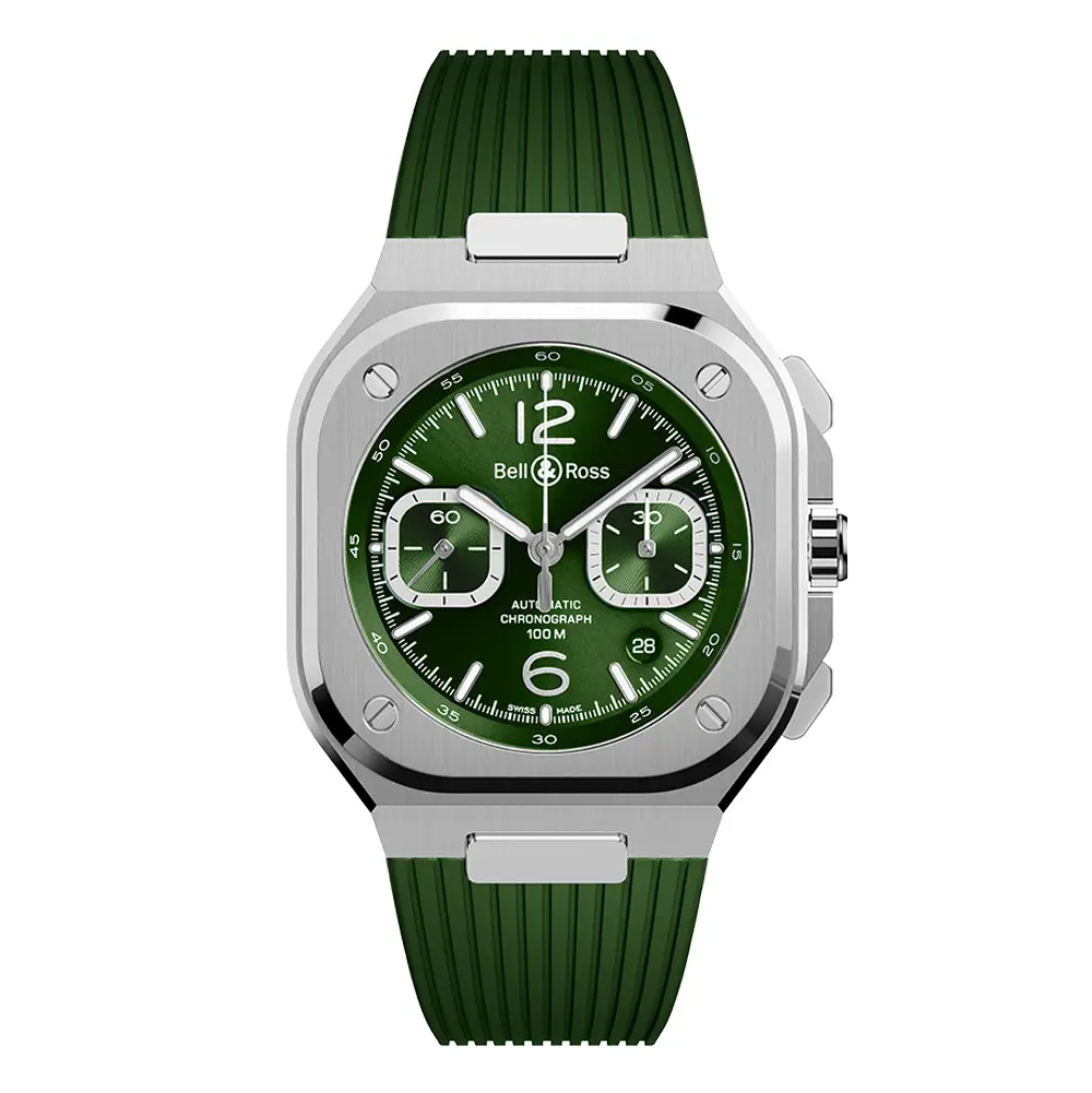 Bell & Ross BR 05 Chrono Green Steel(型号 BR05C-GN-ST/SRB) 融合了 运动性能、技术精度与现代优雅。其 金属绿色放射纹表盘 展现出清新与自信气质,是兼顾时尚与实用的理想之选。