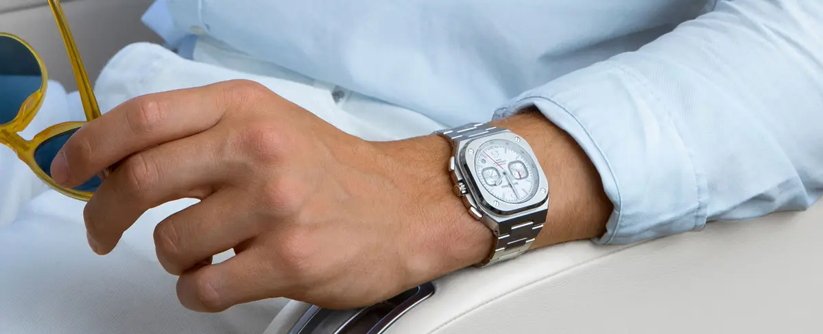 Bell & Ross 以其标志性的方形表壳搭配圆形表盘而备受瞩目,其灵感来自飞机驾驶舱内的仪表。手表在瑞士制造,品牌采用陶瓷、钛和碳等高端材料。自动上链机械机芯通常辅以计时码表或格林威治标准时间等复杂功能。因此,Bell & Ross 将精准的技术与独特的设计融为一体。