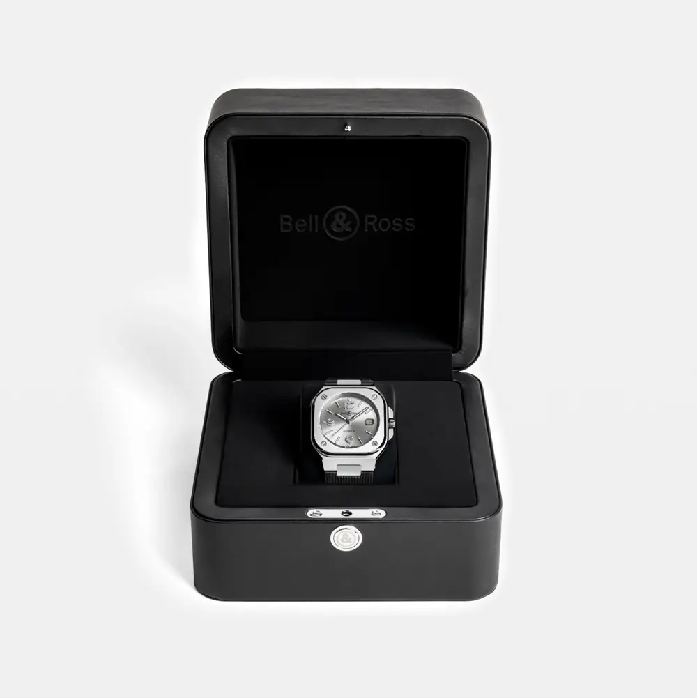 腕表搭载 自动上链机芯 BR-CAL.321,具备 约 42 小时动力储存,确保精准可靠。配备 一体式不锈钢表链与折叠扣,并具备 100 米(10 ATM)防水性能。BR 05 Grey Steel 是 现代设计、实用功能与法式优雅 的完美平衡之作。