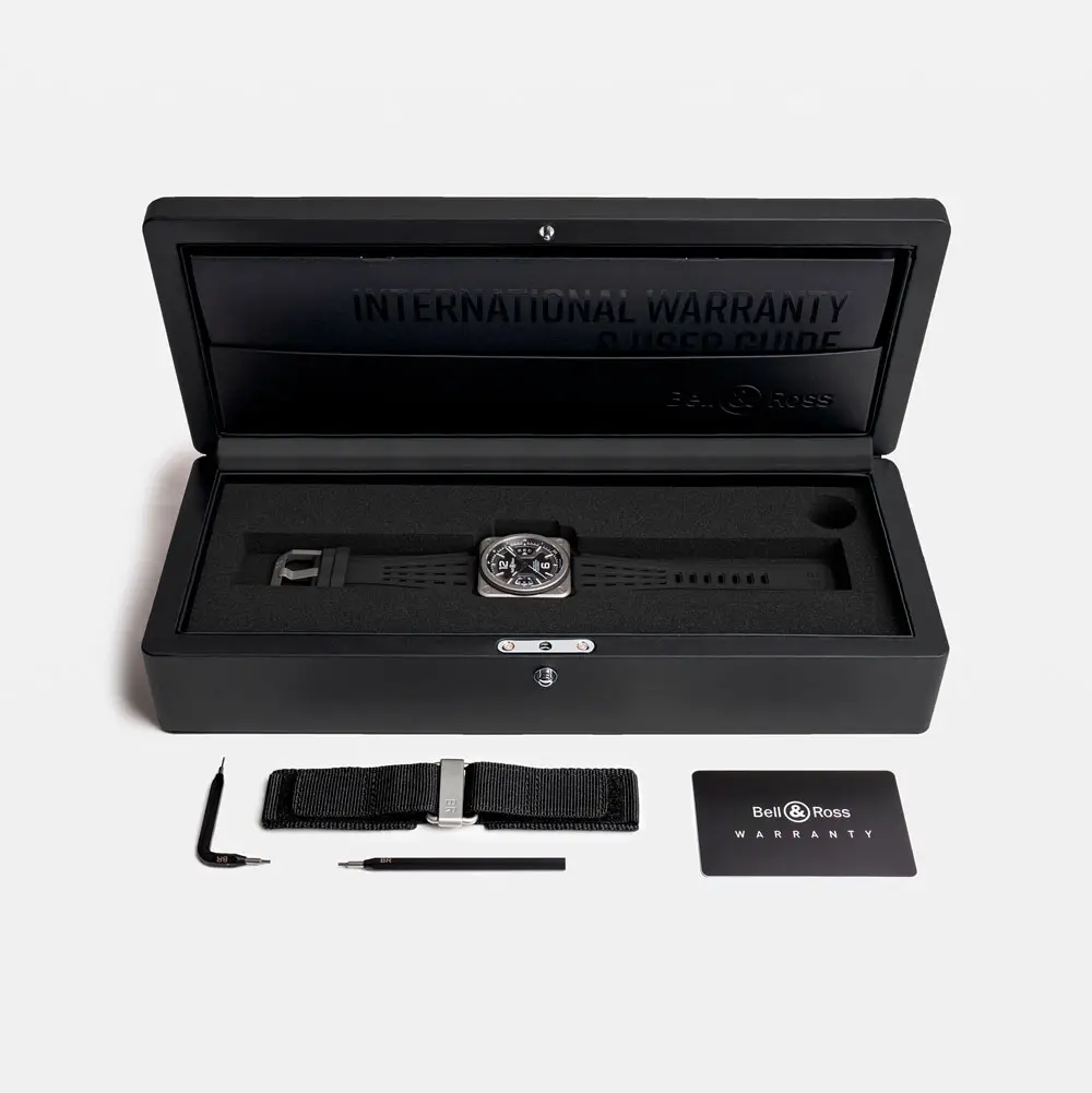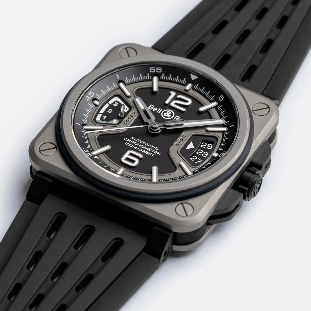 具备 100 米防水性能,腕表配以 打孔橡胶表带,凸显运动特质。Bell & Ross BR-X3 Black Titanium 是追求 高性能、现代美学与大胆风格人士的理想之选。