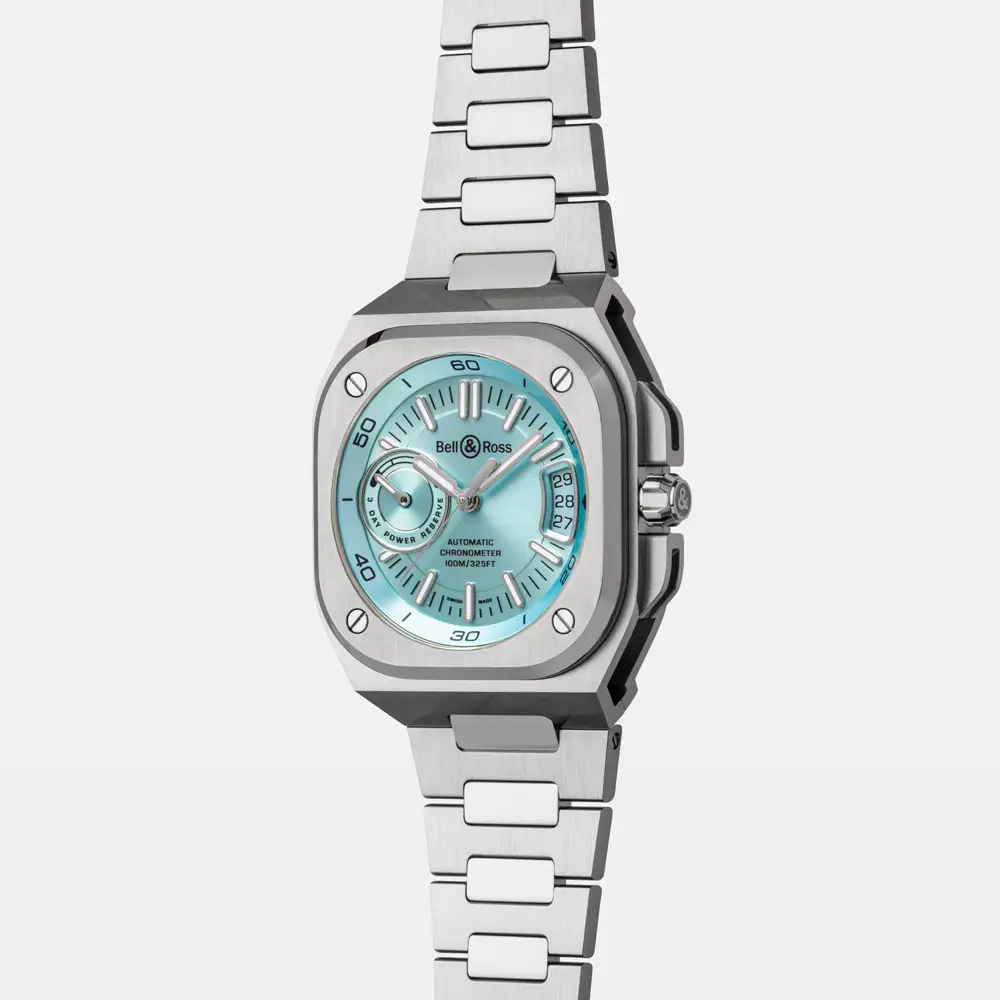 Bell & Ross BR-X5 Ice Blue Steel 是一款结合精密工程、优雅设计与清新色彩的杰出腕表,属于备受推崇的 BR-X5 系列,专为追求独特与品位的男士打造。