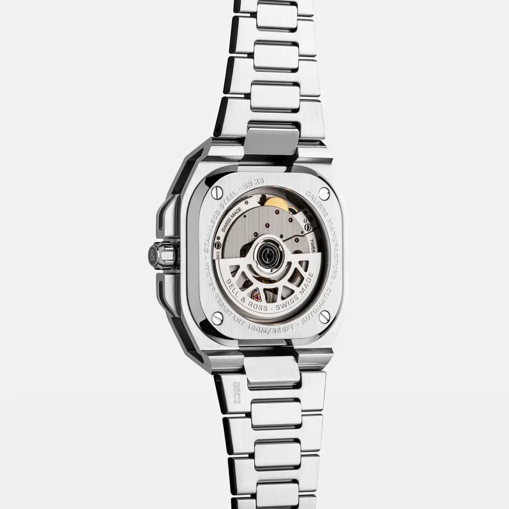 Bell & Ross的BR-X5系列翻开了品牌标志性方形设计的新篇章。该系列表款采用多层表壳结构,由不同材质(最常见的是钛和钢)构成,确保了最佳的耐用性和视觉冲击力,从而推动了结构工程和腕表设计的发展。该系列的每款腕表均配备经瑞士官方天文台认证(COSC)的BR-CAL.323自动上链机芯,保证了卓越的精准度。