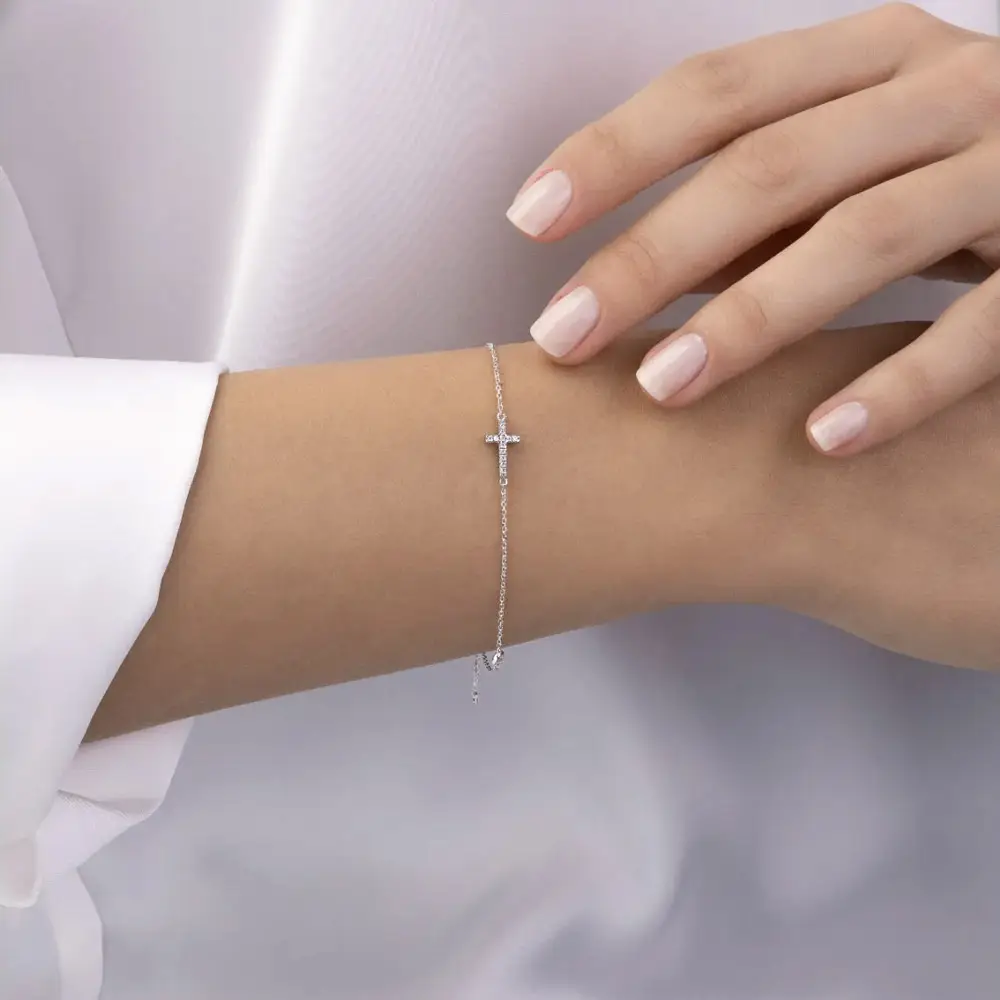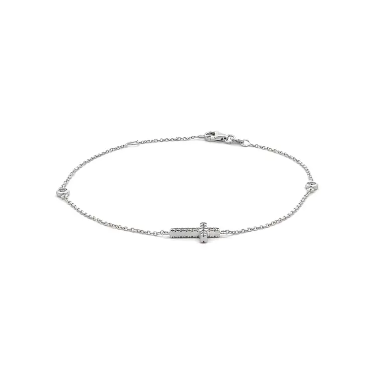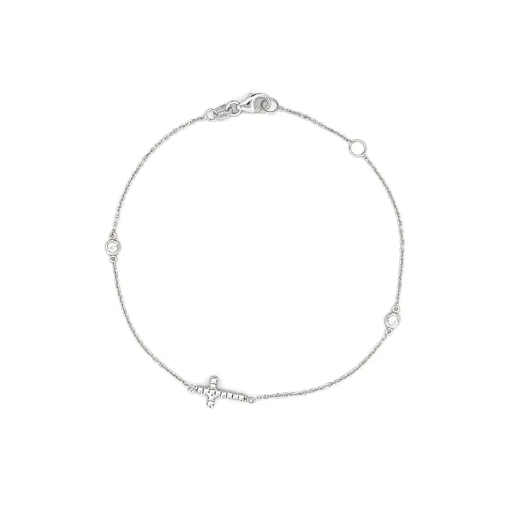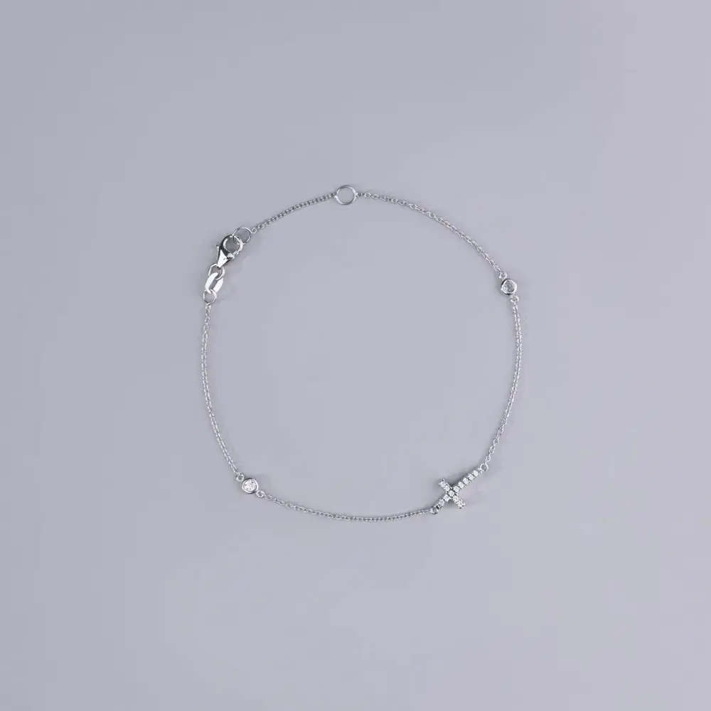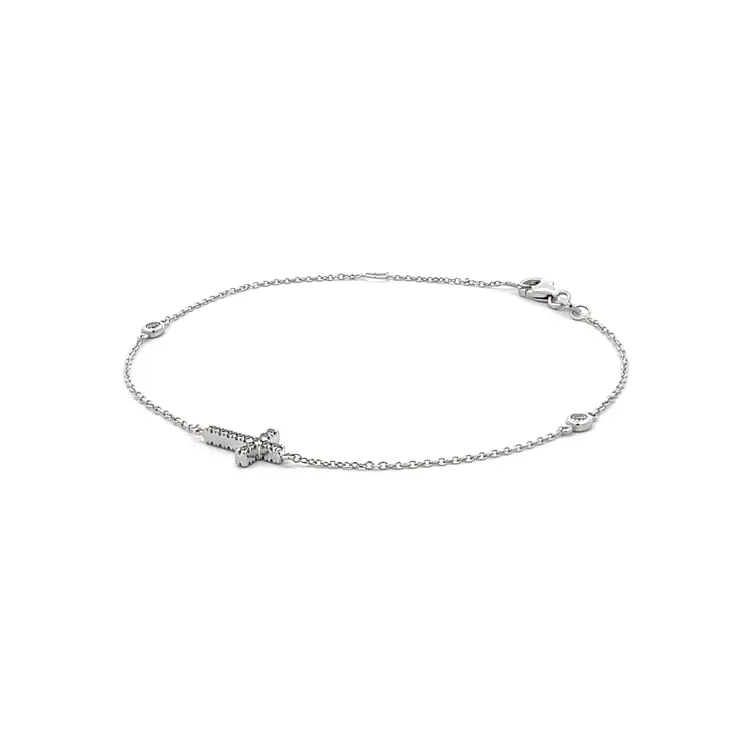 锆石手链配白金十字架