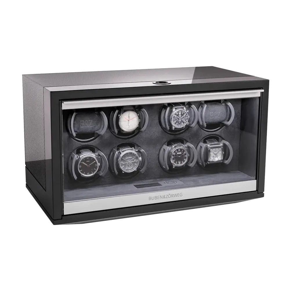 Buben & Zorweg NEO 8 Carbon High-Gloss(宝宾泽维格) 是一款 奢华自动上链表盒,可容纳 8 枚自动机械表,完美融合 先进技术、精湛工艺与优雅设计。采用 Time Mover® 系统,确保腕表始终保持精准运转,随时佩戴。