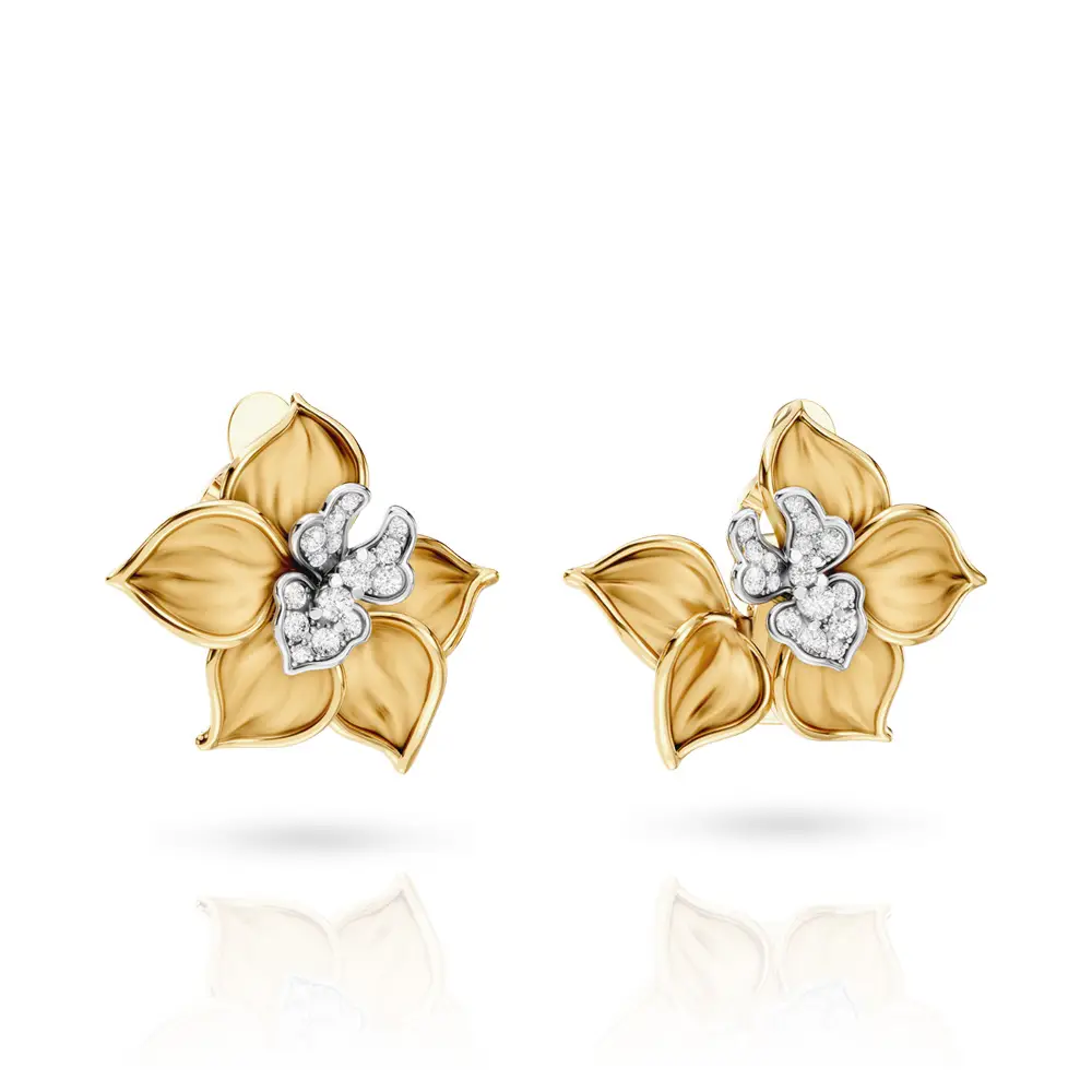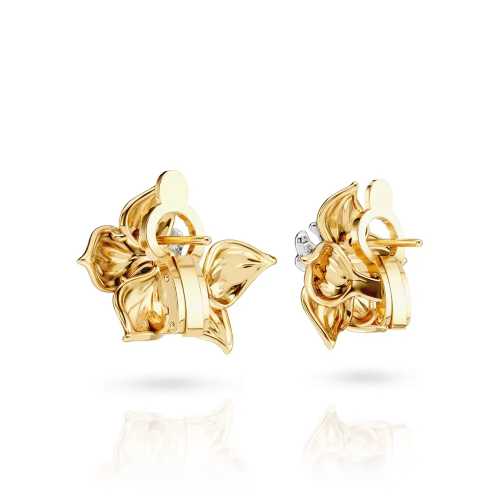 Carrera y Carrera Orquídeas Maxi 耳环来自 Carrera y Carrera Orquídeas 系列,是一款以盛开兰花为灵感的精致高级珠宝。耳环采用 18K黄金与白金 打造,兼具耐久性与优雅对比效果。其核心设计为 雕塑感兰花造型,展现细腻花瓣结构与光影变化。