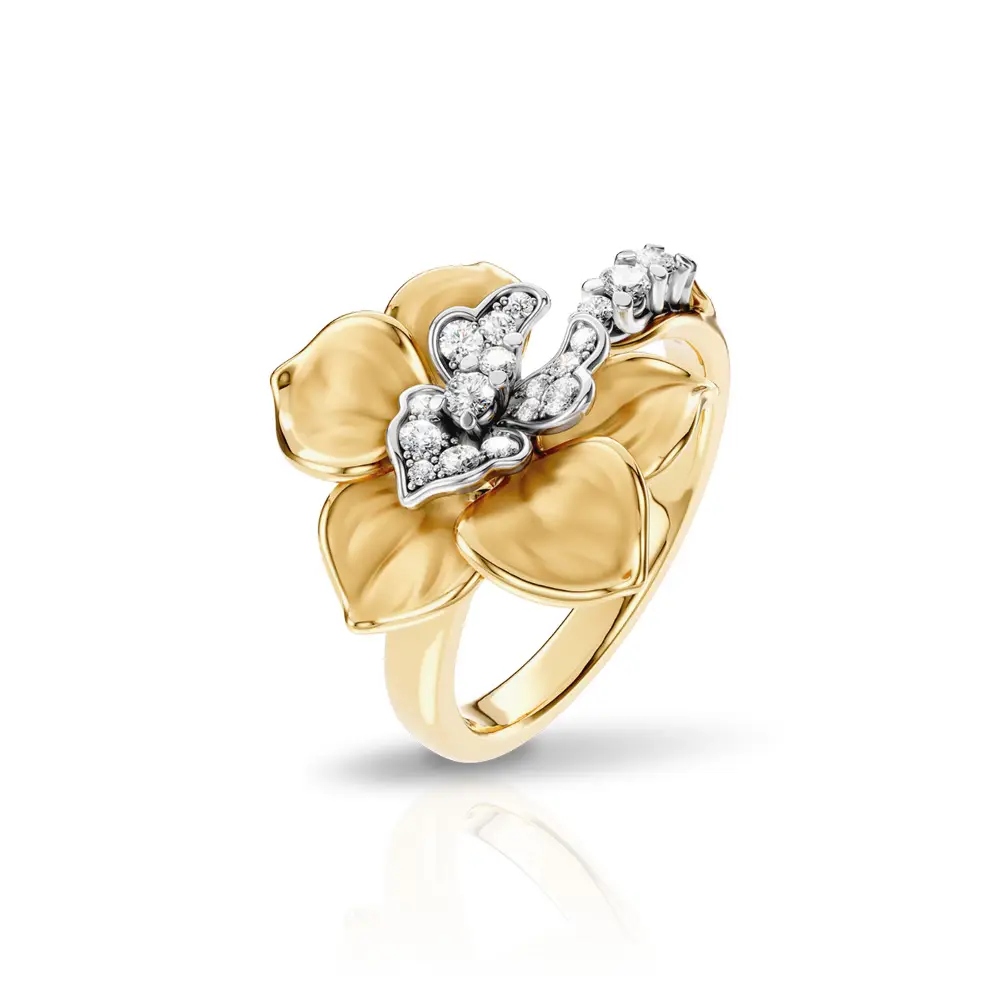 Carrera y Carrera Orquídeas 戒指来自 Carrera y Carrera Orquídeas 系列,是一款以盛开兰花为灵感的高级珠宝。戒指采用 18K黄金与白金 打造,呈现优雅对比效果。其核心为 雕塑感兰花造型。