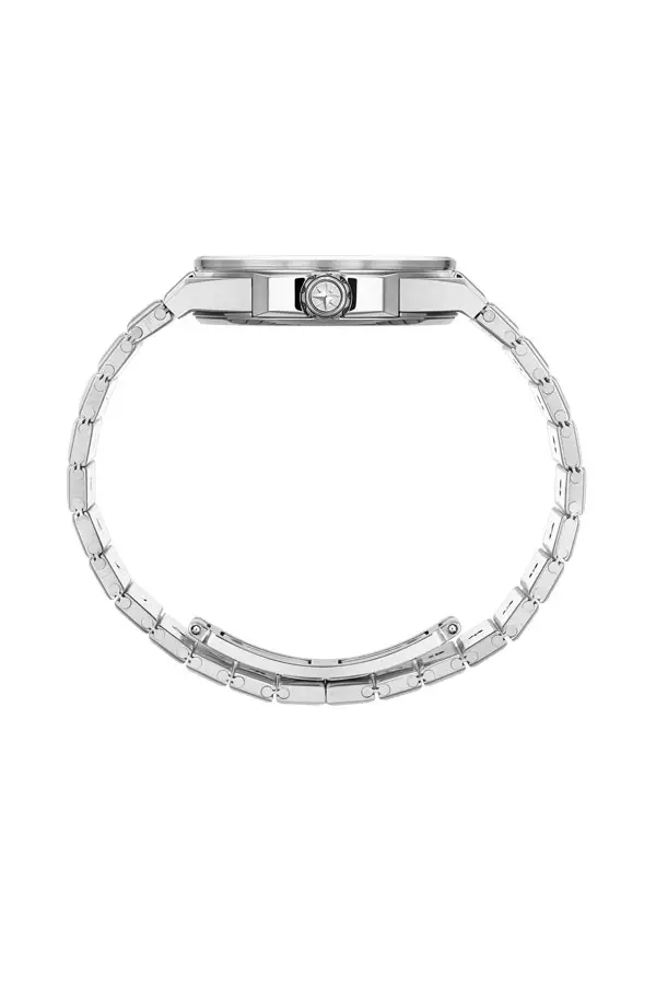 腕表采用圆形不锈钢表壳,直径为33 毫米,搭配银色不锈钢表带和折叠式表扣,佩戴舒适且稳固。蓝色表盘饰有精致纹理,灵感取自鹰眼虹膜,展现出非凡美感与清晰易读的布局。
