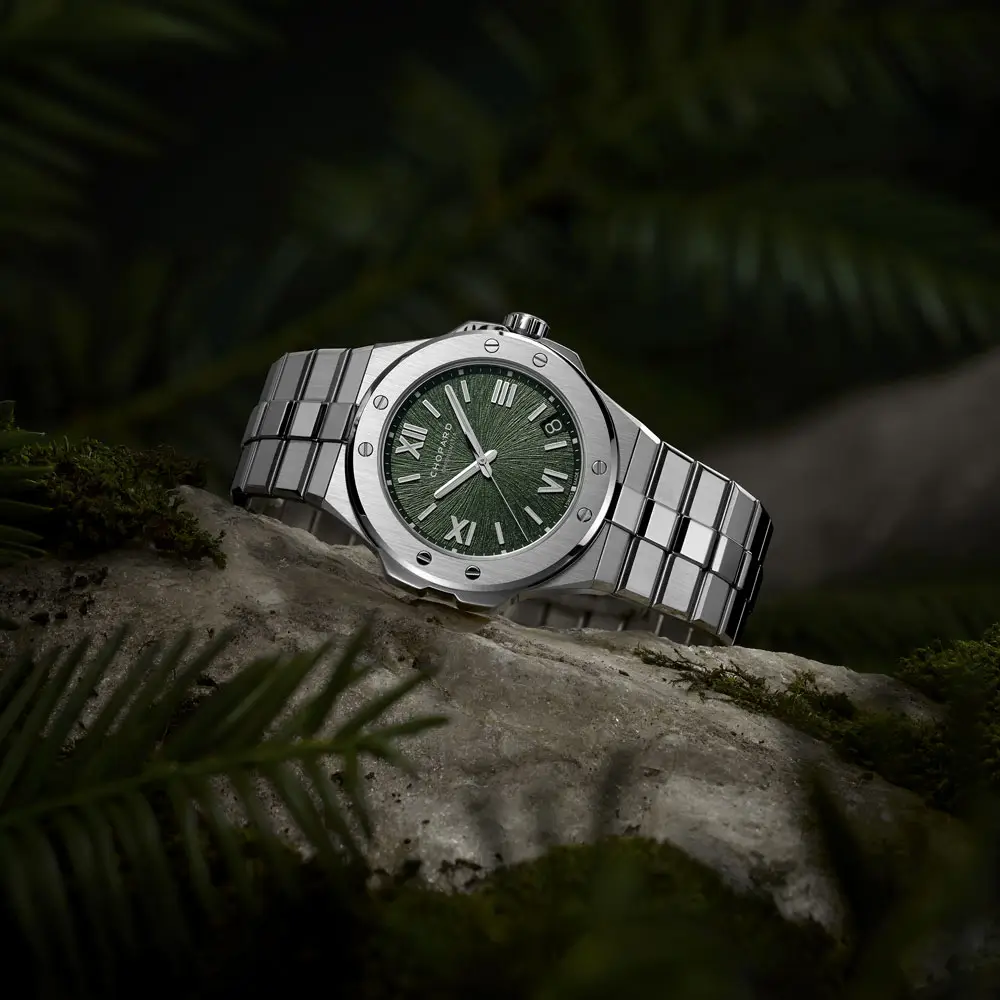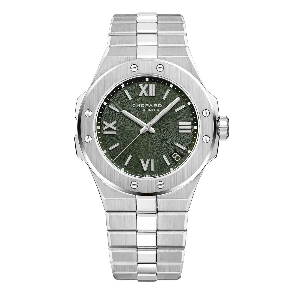 Chopard Alpine Eagle 298600-3014 诠释了现代奢华运动优雅腕表的全新风格,灵感源自阿尔卑斯山脉的力量与纯净之美。表壳与一体式表链采用独家 Lucent Steel™ 精钢打造,兼具卓越的坚固性、耀眼光泽与持久耐用性。松绿色表盘拥有细腻纹理,灵感来自雄鹰的虹膜,并以罗马数字与精致刻度点缀,展现鲜明而自信的视觉个性。