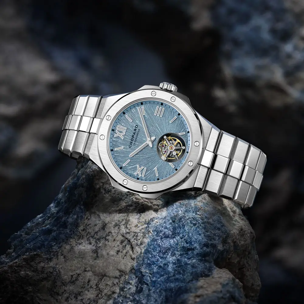 萧邦的阿尔卑斯雄鹰(Alpine Eagle)系列是对阿尔卑斯山雄伟壮丽的自然风光和翱翔于山峰之上的雄鹰力量的礼赞。该系列是对 20 世纪 70 年代标志性圣莫里茨系列的现代诠释,由萧邦家族第三代传人卡尔-弗里茨-舍费尔(Karl-Fritz Scheufele)发起设计。