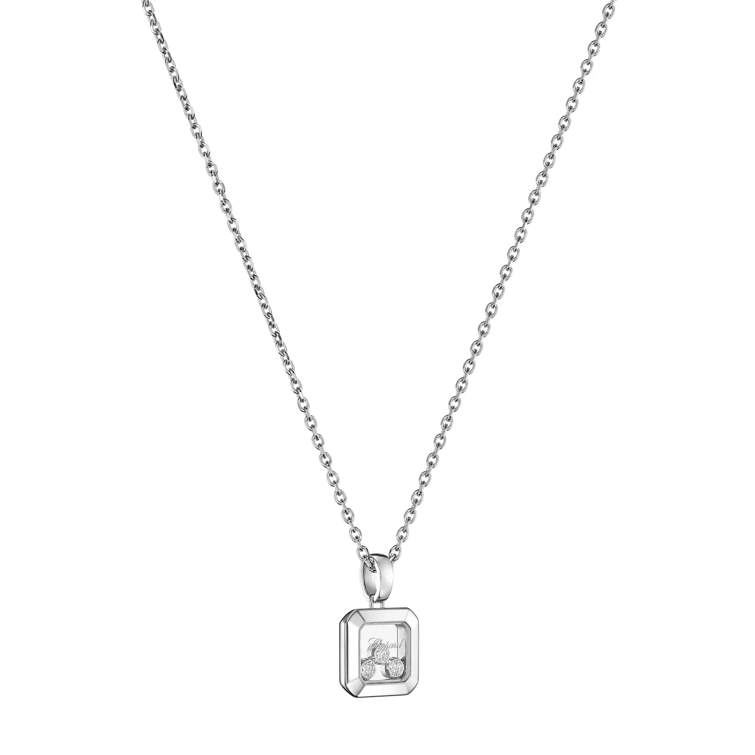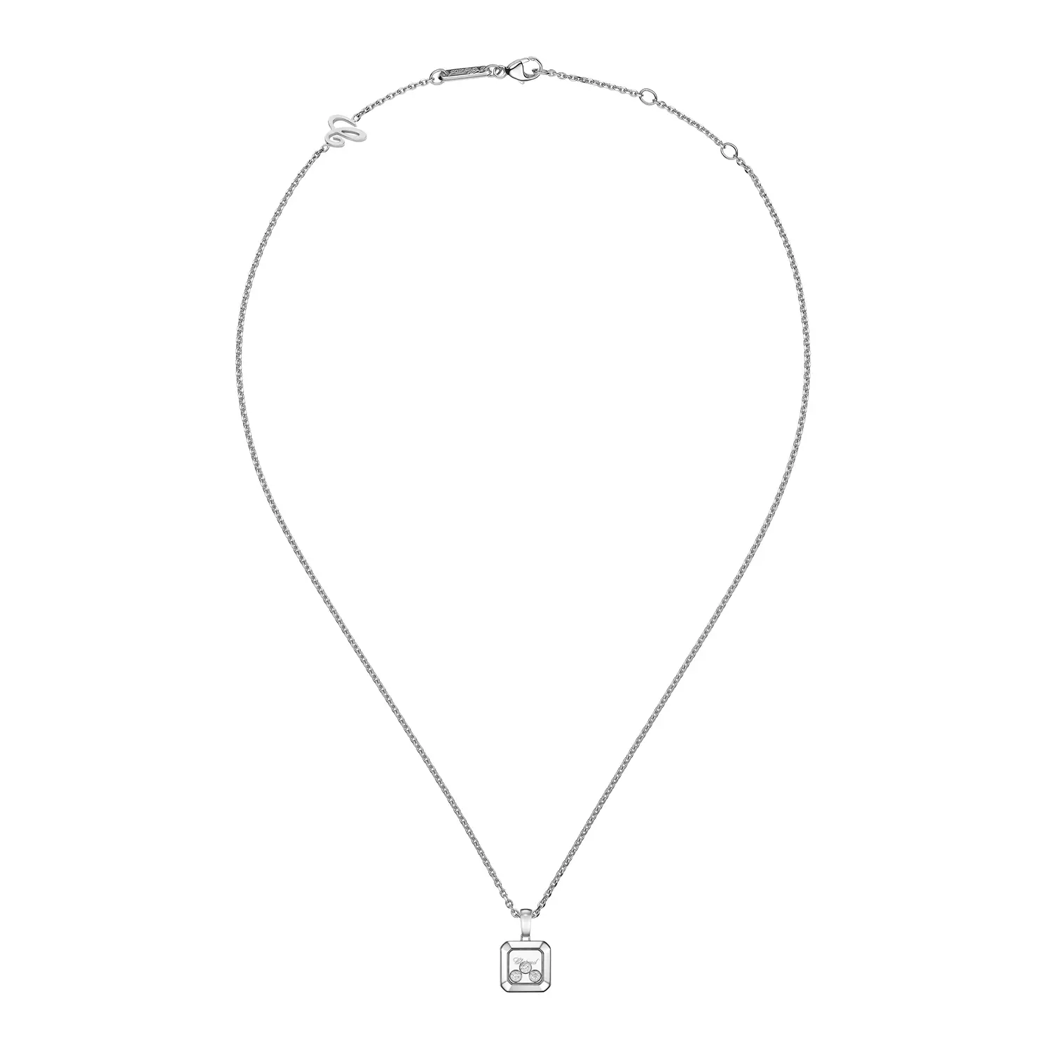 吊坠内的 多颗活动钻石 总重 0.15 克拉,精选品质上乘的宝石,具备 Top Wesselton (F‑G) 色泽 和 IF‑VVS 净度。钻石与抛光白金相互映衬,尽显璀璨光芒,完美体现系列的理念:“Little Diamonds Do Great Things.”