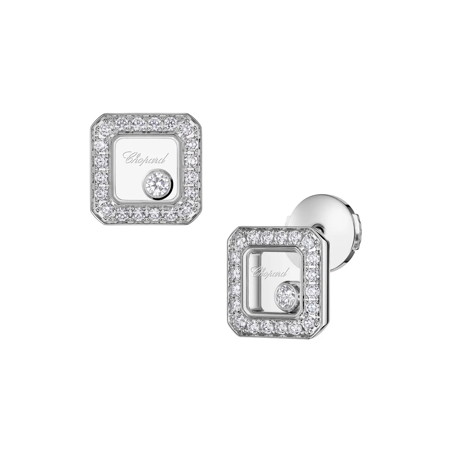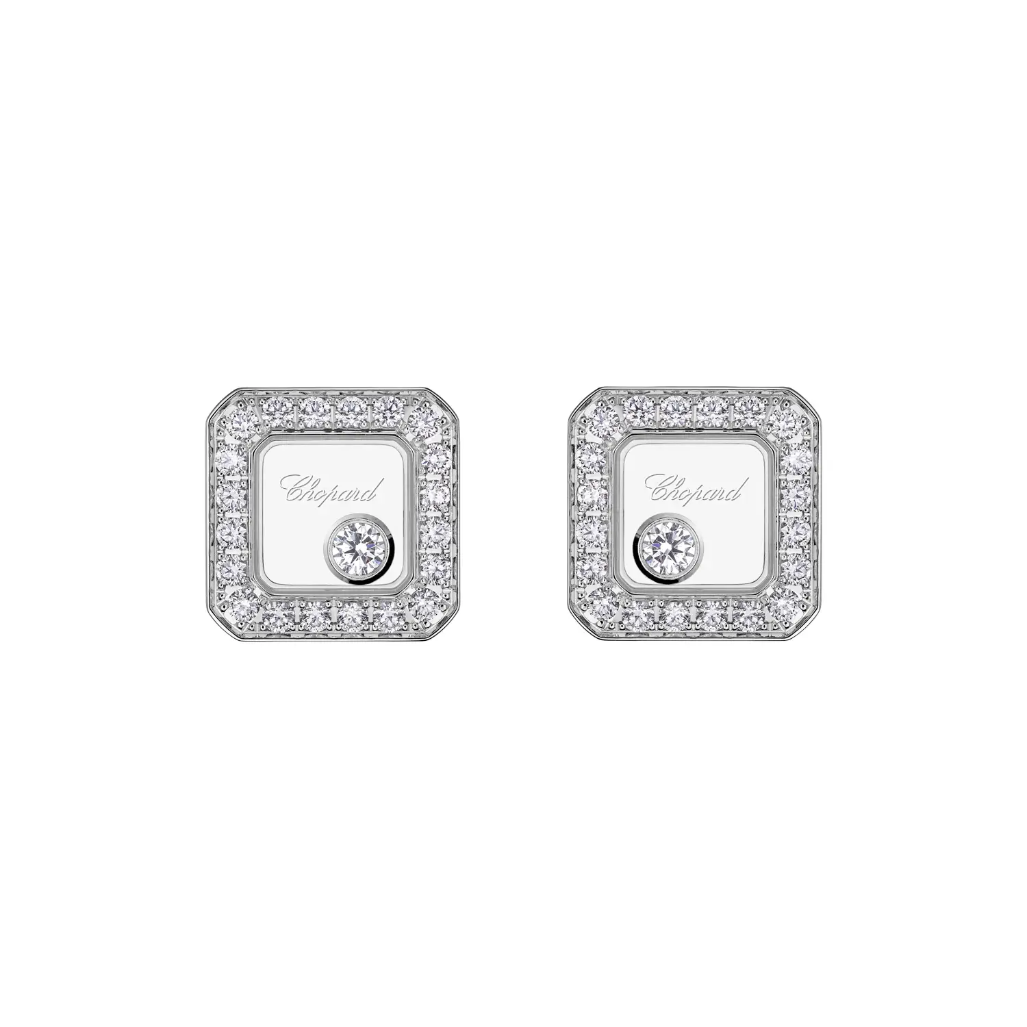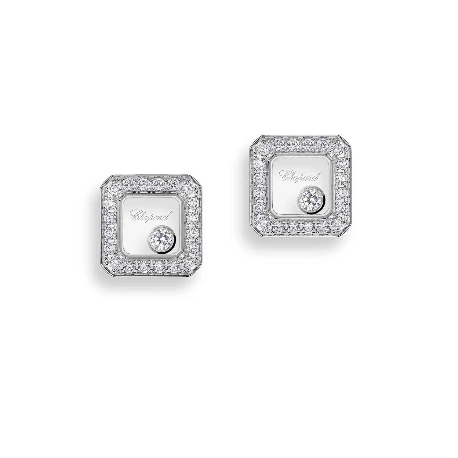Chopard Happy Diamonds Icons 83A114‑1201 耳环将喜悦、优雅与永恒动感融于一体。采用 18K白金 精工打造,每只耳环都镶有一颗 自由滑动的钻石,悬浮在两层蓝宝石玻璃之间 —— 这是 Chopard 经典 Dancing Diamonds 设计的标志性特点,随着动作展现璀璨光芒。
