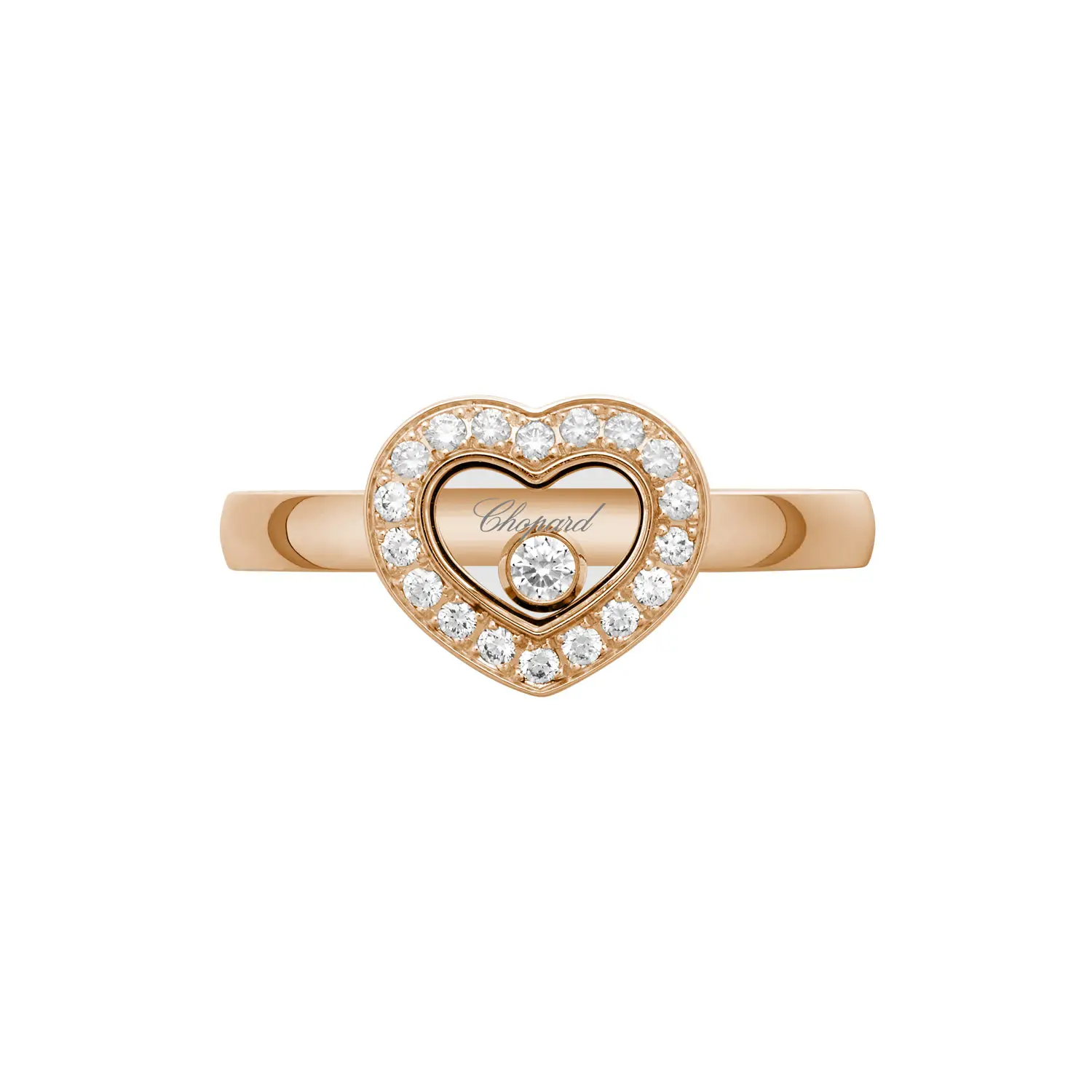 这款 Chopard Happy Diamonds 82A054-5211 戒指展现了该系列标志性的轻盈、光彩与优雅。采用 18K 道德玫瑰金 制作,镶嵌 19 颗总重约 0.19 克拉的明亮式切割钻石,在两片蓝宝石水晶间自由舞动——这是 Happy Diamonds 系列的经典设计,象征 快乐、自由与生命的活力。