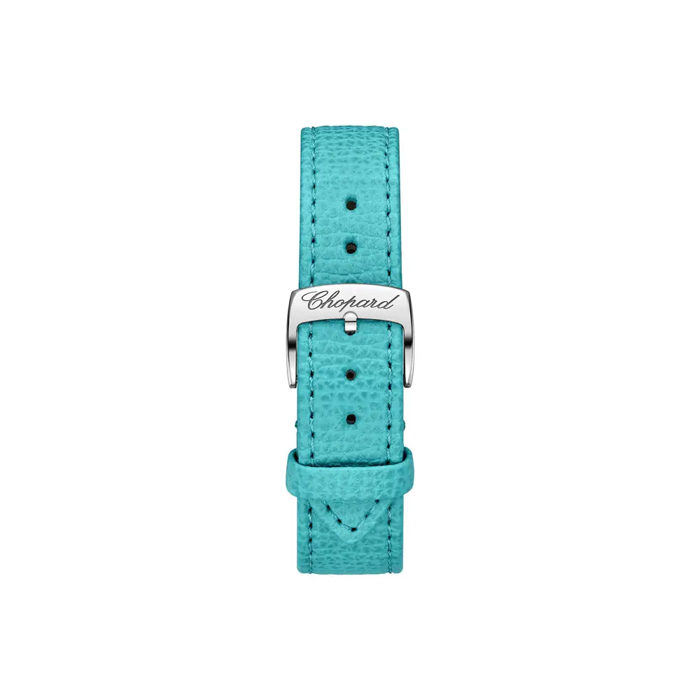 腕表搭载瑞士石英机芯,确保精准无忧。蓝色缎面小牛皮表带搭配精钢表扣。腕表防水深度达30米,限量发行250枚,既是收藏珍品,也是日常配饰。萧邦 Happy Fish 是对自由、光明和女性优雅的赞美。