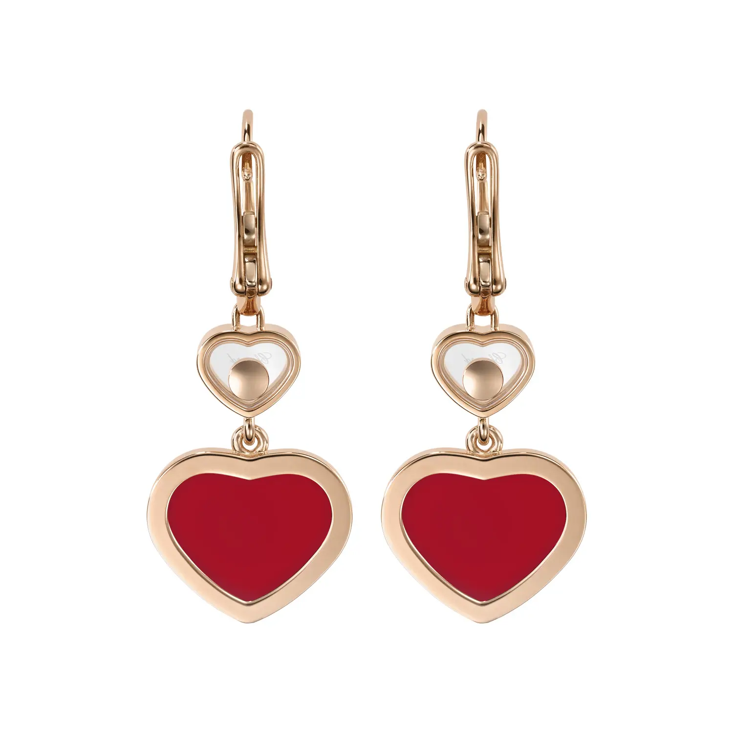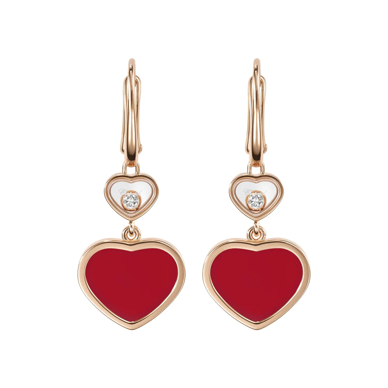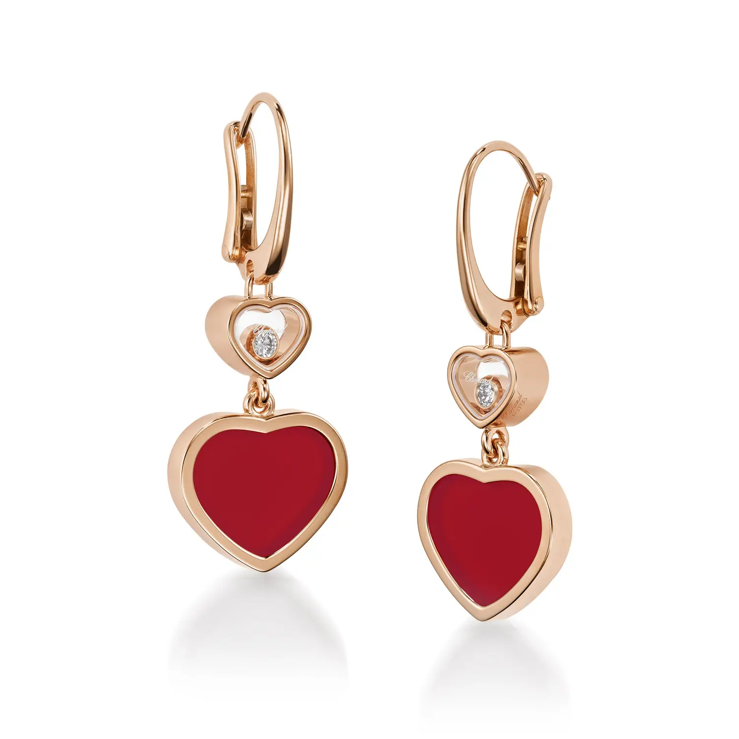 设计亮点是心形的 红玉髓(Carnelian),其浓郁的红色为作品增添层次感和 Happy Hearts 系列特有的愉悦气息。耳环柔美却不失存在感,是奢华配饰或富有心意的礼物之选。