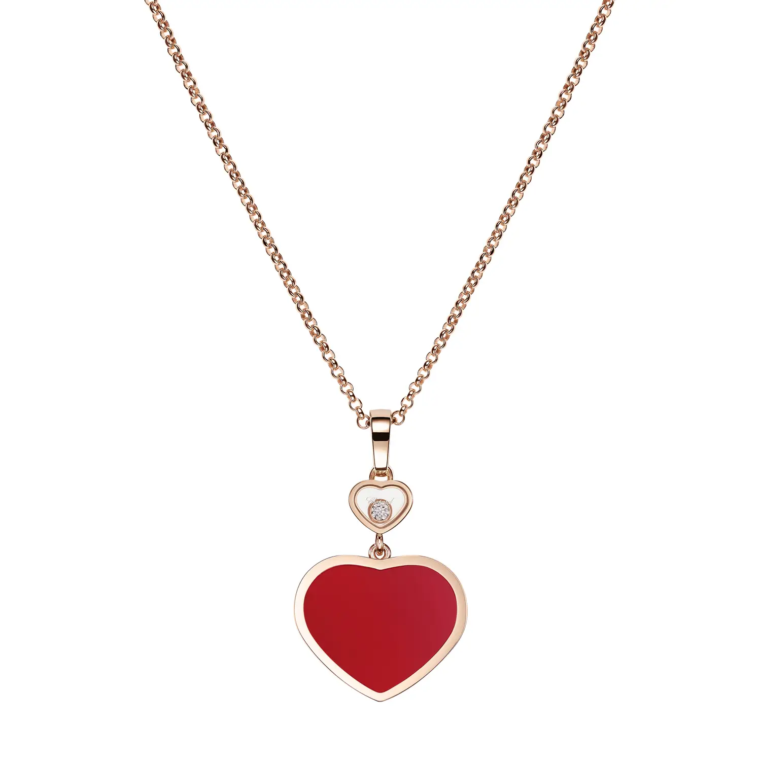 这款优雅的 Chopard Happy Hearts 797482-5820 项链采用 18K 道德玫瑰金打造,来自标志性的 Happy Hearts 系列,将心形符号、钻石光芒与彩色宝石的魅力完美融合。作品镶嵌 约 0.05 克拉的白钻,为项链增添细腻闪耀与永恒的优雅气息。