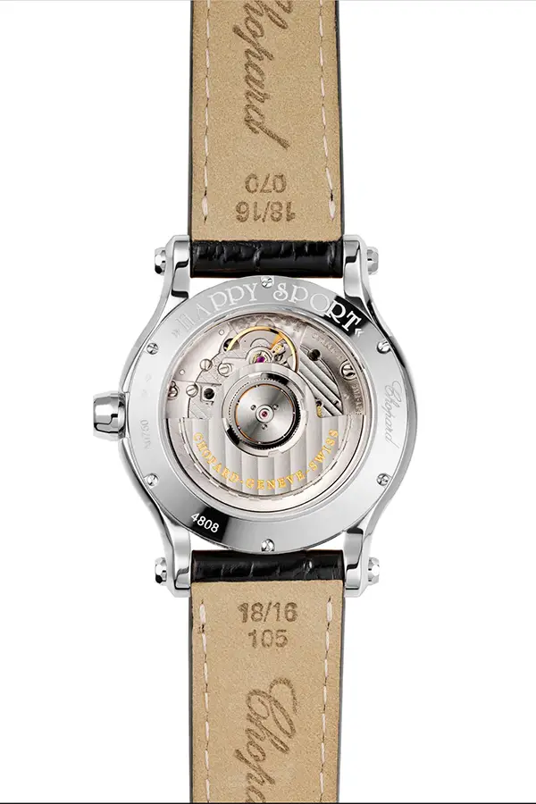 黑色鳄鱼皮表带 增添典雅对比与舒适佩戴体验。内部搭载 瑞士自动机械机芯,确保 精准走时与稳定性能。Chopard Happy Sport 278559-3001 不仅是一枚腕表,更是一件 象征女性力量、自由与永恒之美的珠宝杰作。