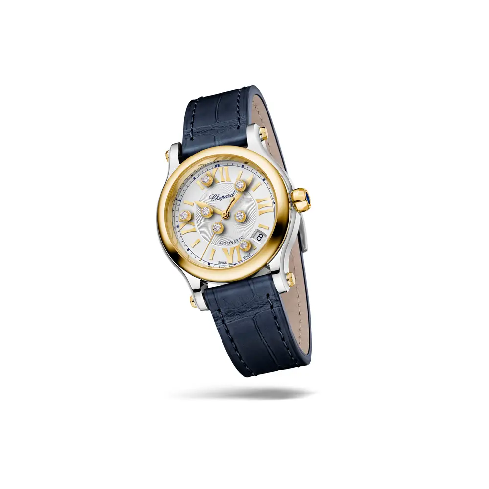 腕表内部搭载的自动机芯以可靠和精准著称,动力储备长达 62 小时。该表款配有蓝色鳄鱼皮表带和经典表扣,防水深度达 30 米。萧邦 Happy Sport 此款腕表体现了自由、俏皮和非凡的风格,是追求美感和完美技术的女性的理想选择。