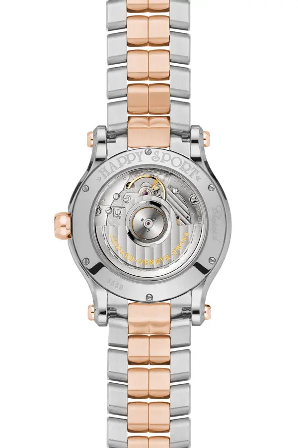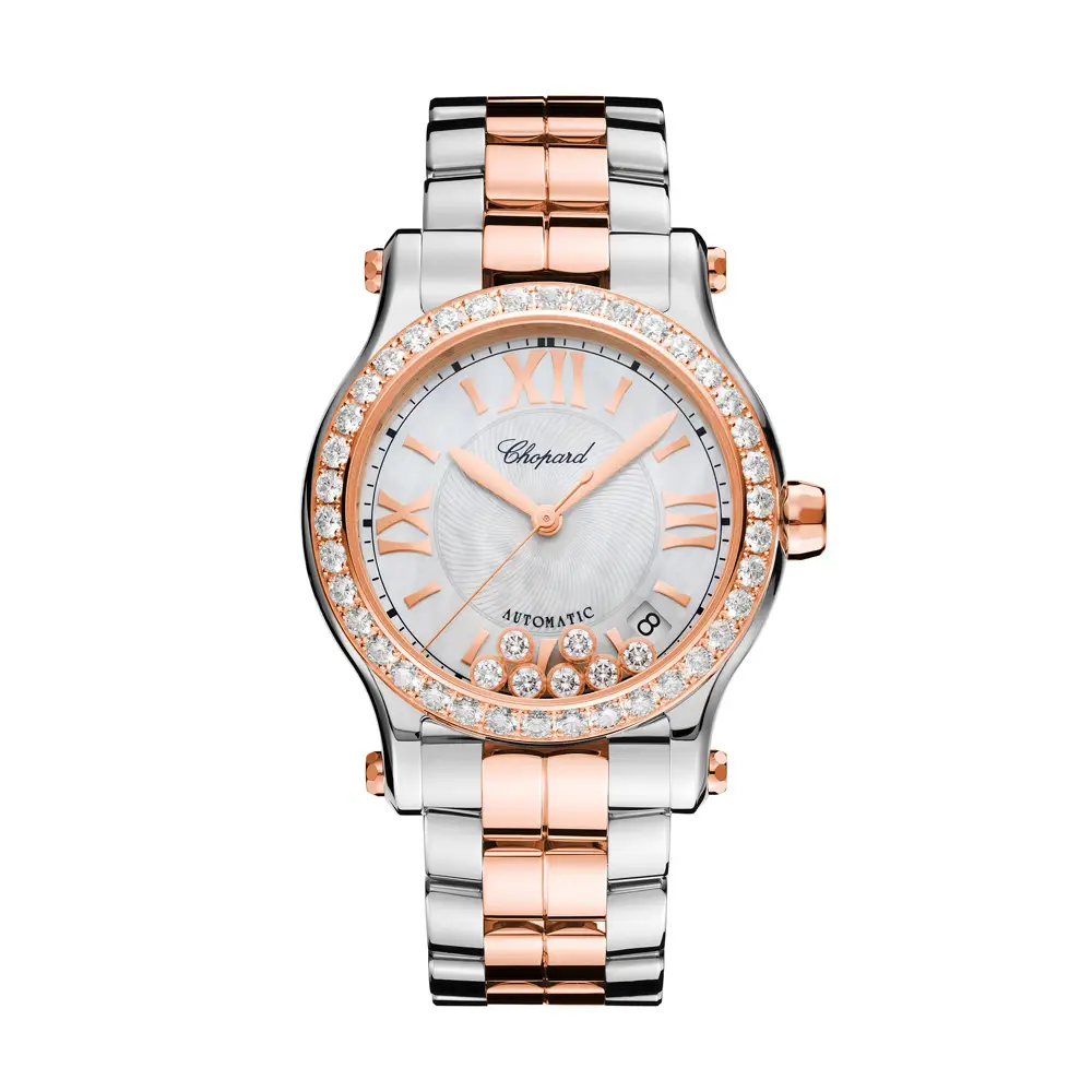 Chopard Happy Sport 278559-6007 結合果敢與柔美,展現現代女性的獨特魅力。精鋼錶殼配以18K玫瑰金錶圈,散發溫潤奢華的光芒。