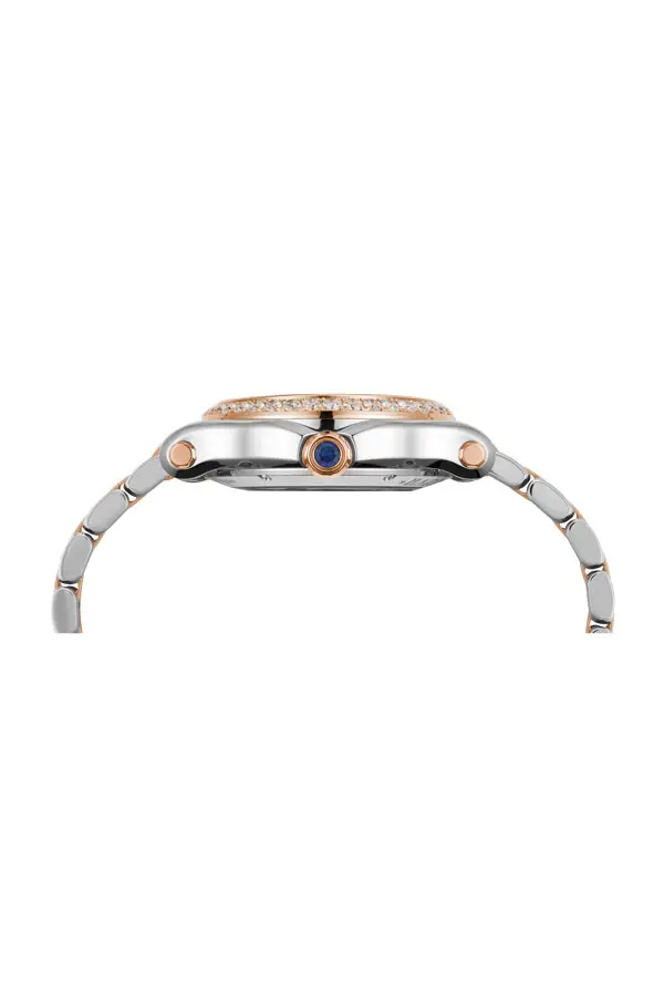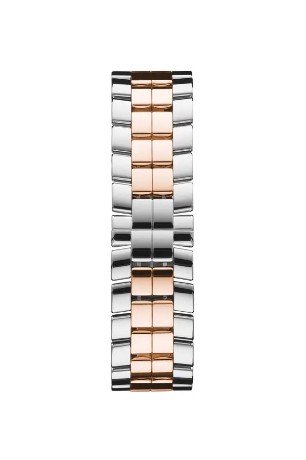 雙色金屬錶帶融合精鋼與18K玫瑰金,搭配摺疊式錶扣,佩戴舒適安全。