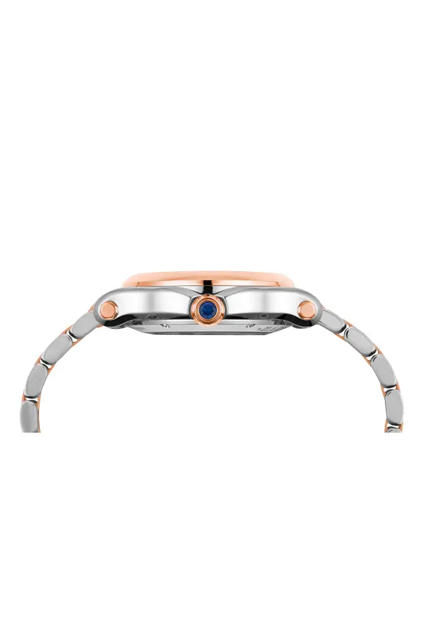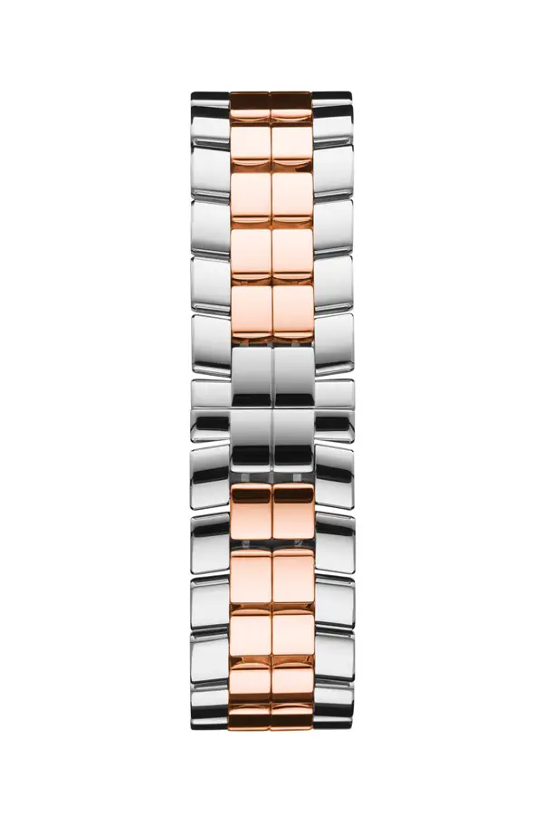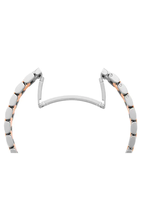 双色表链由精钢与玫瑰金制成,配以折叠式表扣,佩戴舒适稳固。