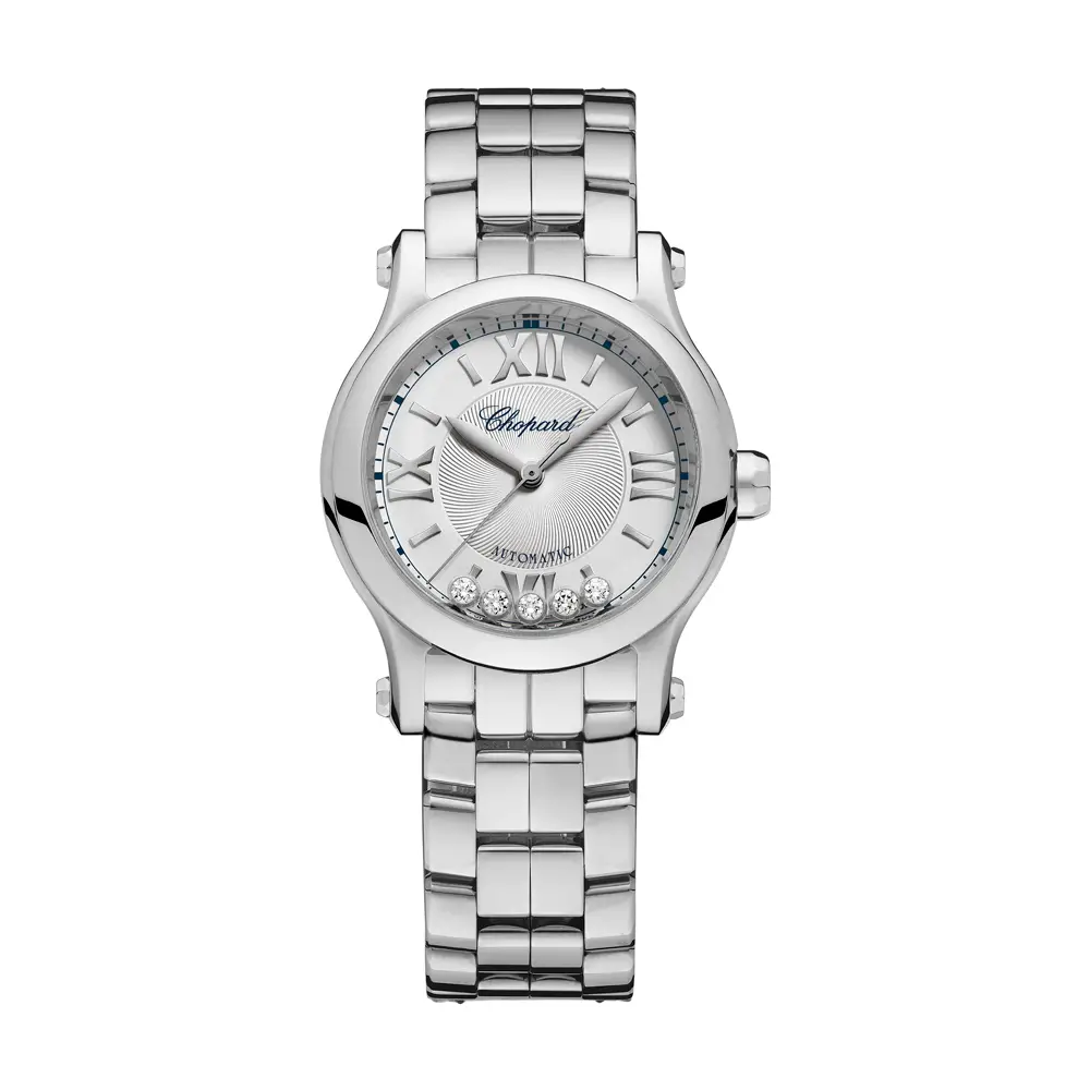 Chopard Happy Sport 278573-3002 展现了 瑞士精准、优雅与趣味设计的完美融合。这款来自标志性 Happy Sport 系列 的腕表,以 永恒之美、全金属结构以及品牌标志性的 灵动钻石 吸引目光——钻石在双层蓝宝石水晶之间自由舞动,象征 欢乐与自由。