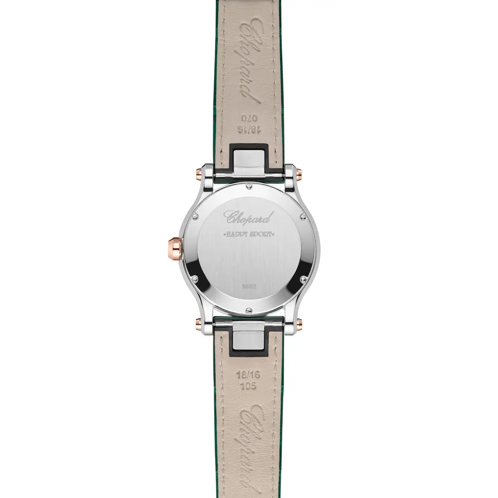 大胆、清新又独具魅力,Chopard Happy Sport 278582-6005 专为追求优雅与个性兼具的女性设计。其 36 毫米圆形精钢表壳搭配18K玫瑰金表圈,尽显温润高贵。