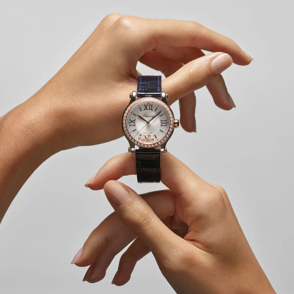 Happy Sport 代表着俏皮优雅、瑞士精密制表工艺和珠宝工艺的和谐统一,体现了现代女性的力量、风格和精致。