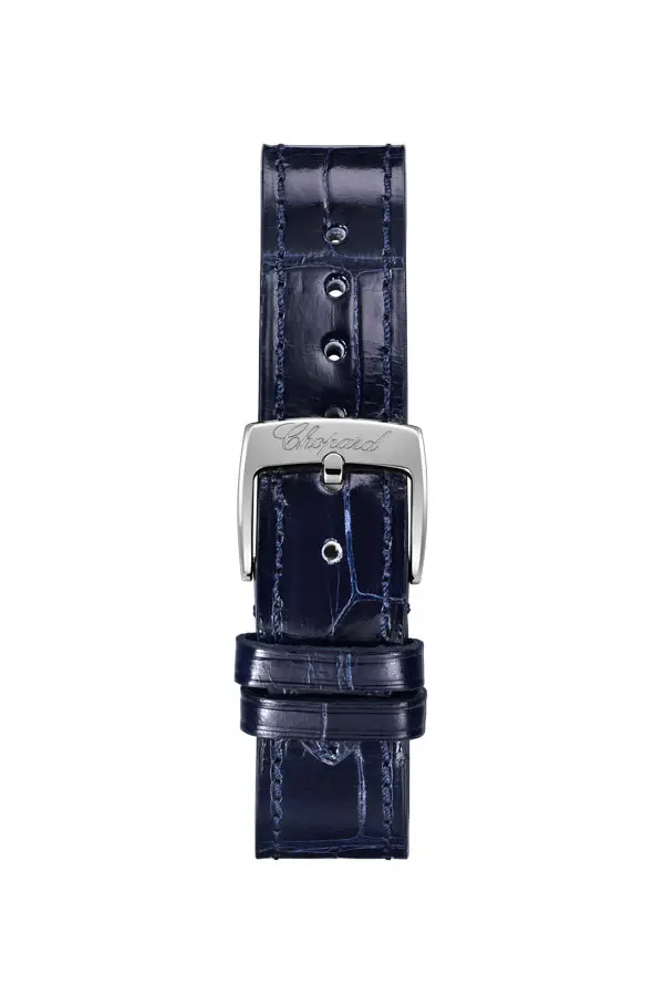 腕表搭载 瑞士自动机械机芯 Chopard 09.01-C,拥有 42 小时动力储存,振频 25,200 次/小时(3 赫兹),配备 27 颗宝石轴承,确保精准稳定。蓝色鳄鱼皮表带 呈现优雅对比,而 30 米防水性能 令腕表适合日常佩戴。Chopard Happy Sport 278608-6003 不仅是一枚腕表,更是 象征现代女性优雅与力量的珠宝艺术品。