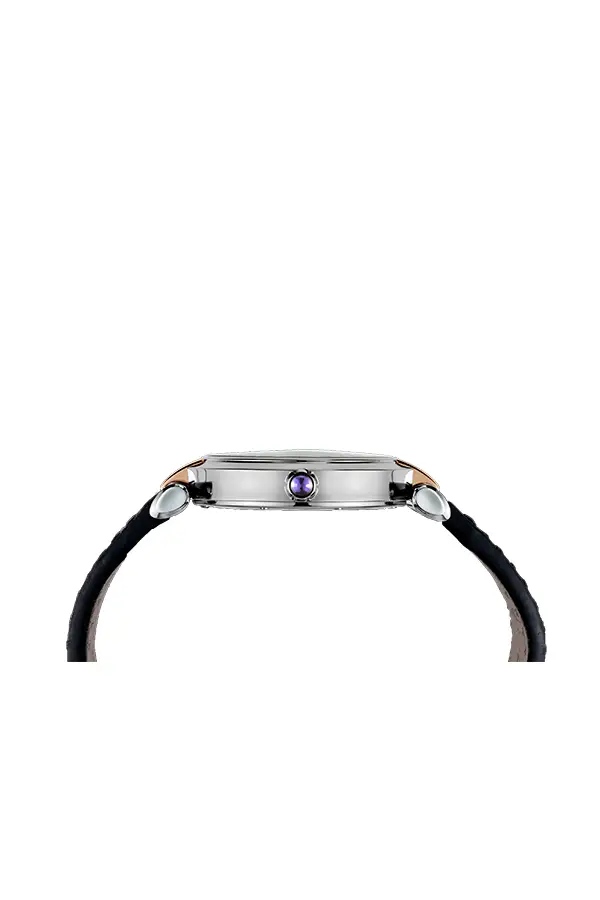 36 毫米精钢表壳 饰以 18K 玫瑰金细节,散发出温暖柔和的奢华光泽。蓝宝石水晶镜面 下的 银色珍珠母贝表盘 呈现出细腻的虹彩效果,表冠镶嵌标志性的 紫水晶圆 cabochon,尽显 Imperiale 系列的高贵气质。