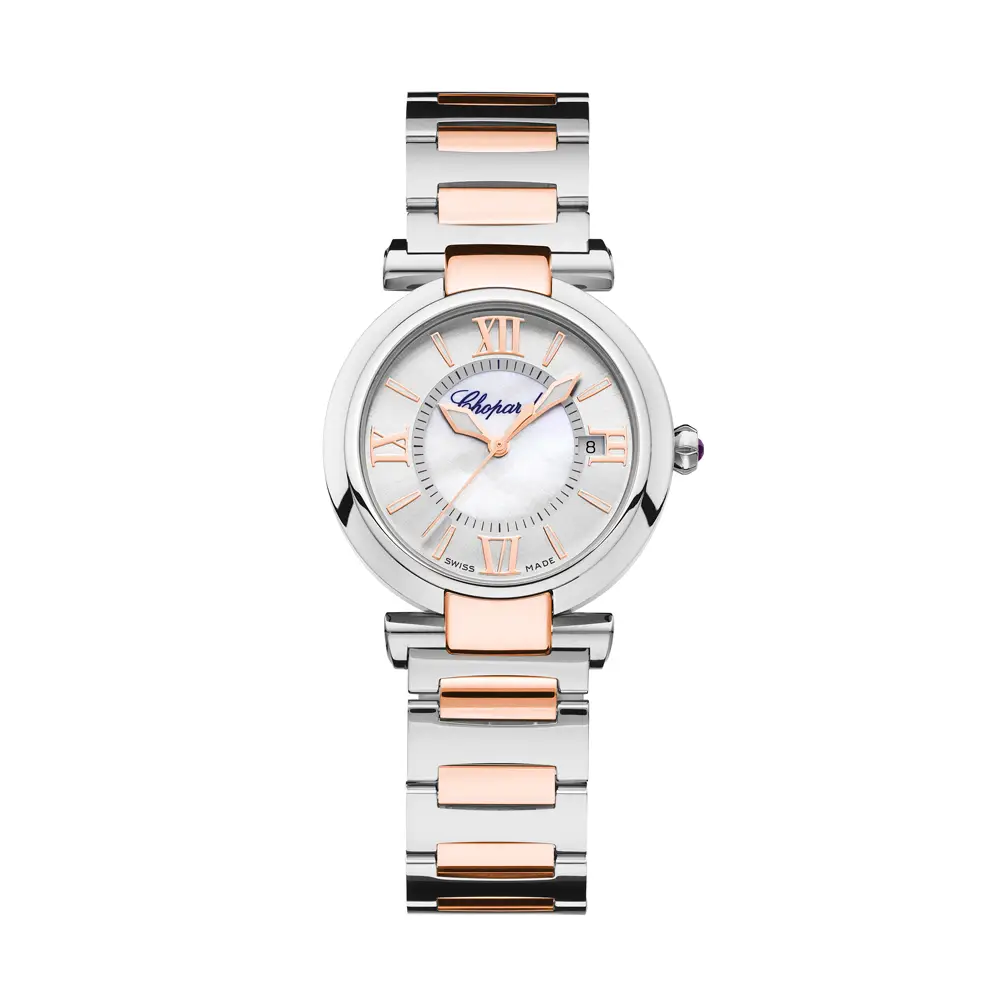 Chopard Imperiale 388563-6002 诠释了 女性优雅、力量与瑞士制表精准 的完美融合。来自 Imperiale 系列的这款腕表,将 精钢与18K玫瑰金 和谐结合,散发出高贵而现代的气质。