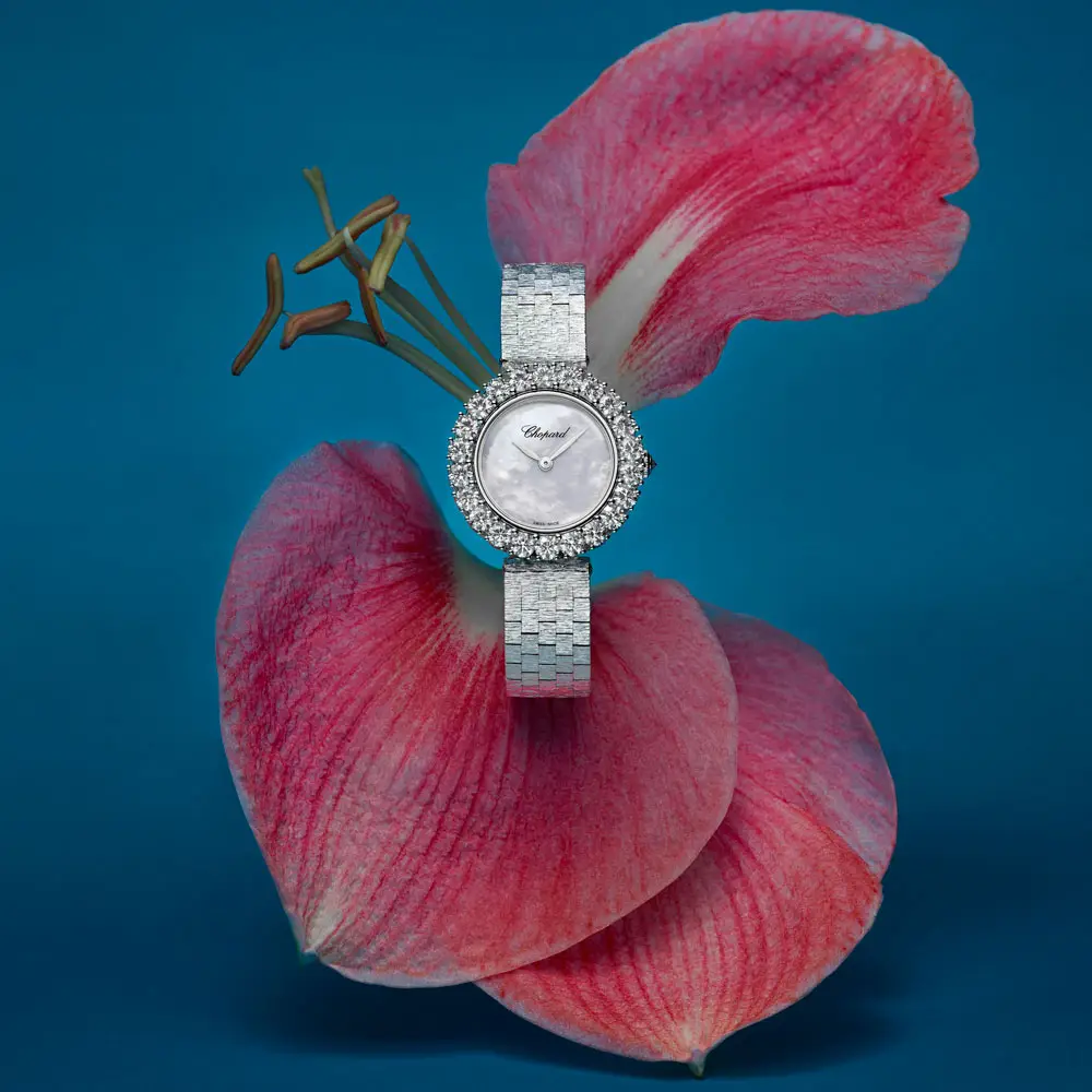 这不仅是一枚腕表,更是一件象征女性优雅与永恒魅力的珠宝杰作。纤薄比例贴合手腕,散发纯粹奢华的光芒。此表完美诠释了萧邦对精湛工艺、道德黄金与钻石恒久光辉的追求。
