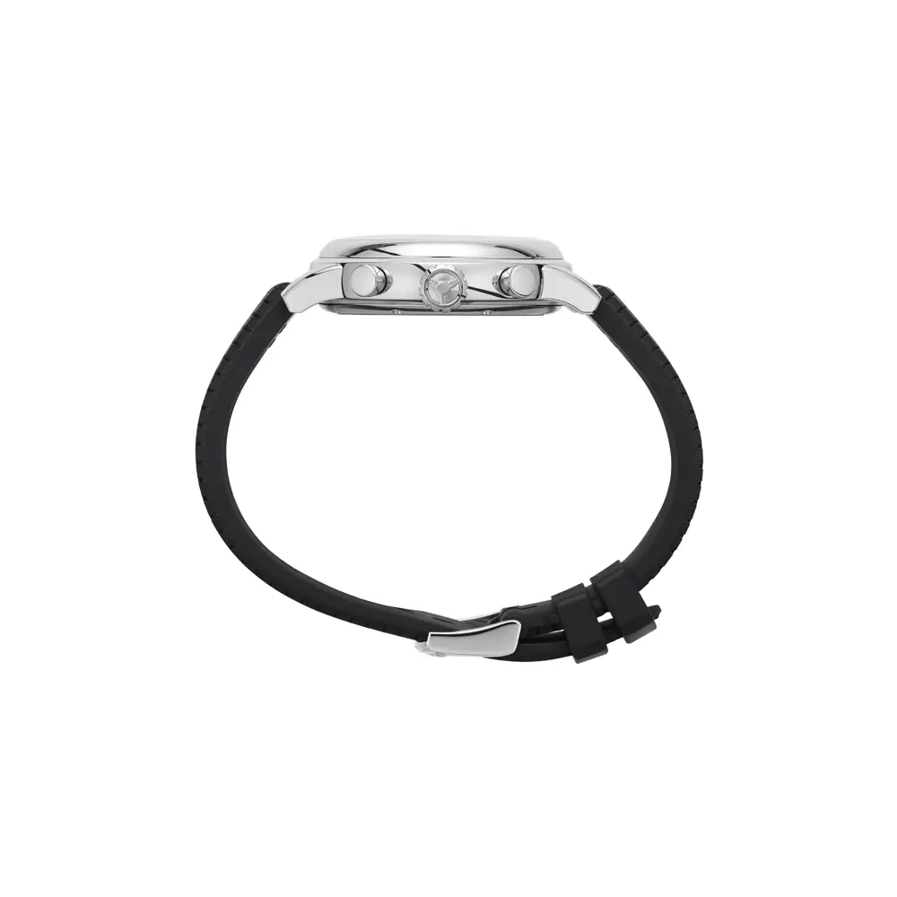 黑色橡胶表带 灵感来源于 Dunlop 经典轮胎花纹,搭配 针扣设计,佩戴稳固舒适。